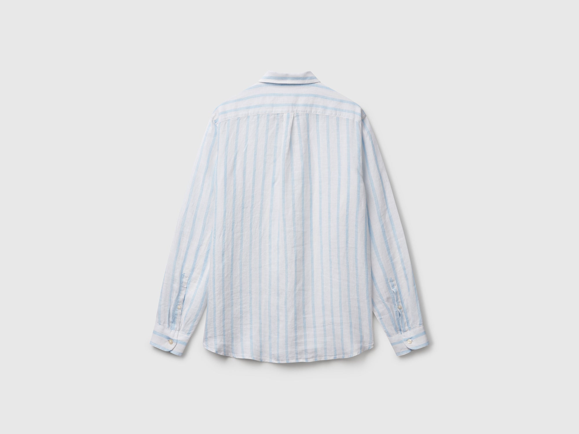 Camicia a manica lunga in puro lino a righe verticali tinto filo. Vestibilità regolare, colletto classico e abbottonatura frontale. Per chi non vuole rinunciare allo stile, anche nei giorni più caldi. Articolo realizzato con materiale in 100% lino coltivato in Europa.