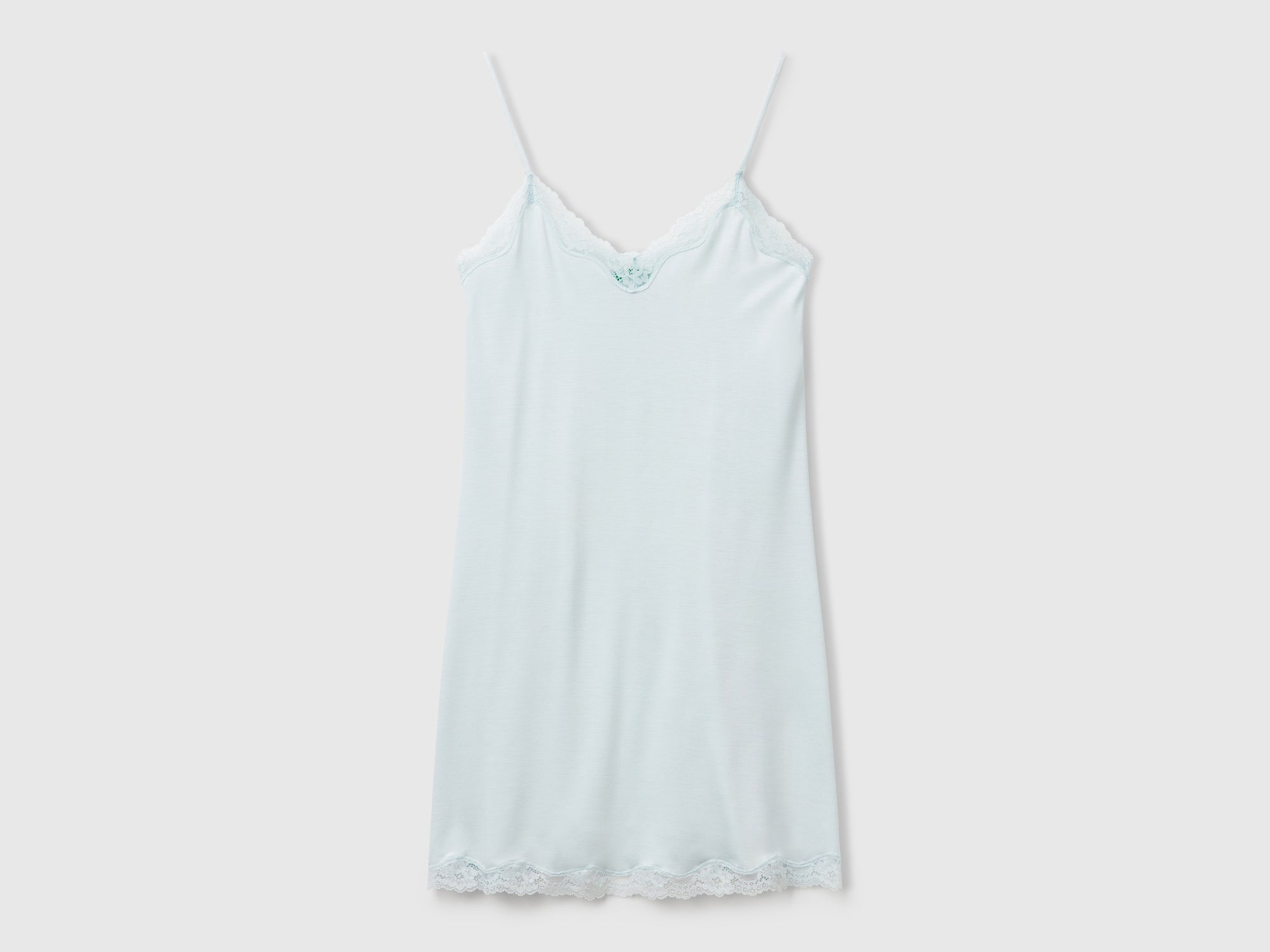Camisón con tirantes finos ajustables e inserciones de encaje en el escote y la parte inferior. Este producto contiene al menos un 30 % de fibras de viscosa LENZING™ ECOVERO™ procedentes de bosques controlados o certificados. LENZING™ y ECOVERO™ son marcas registradas de Lenzing AG. Jersey de viscosa elástico.