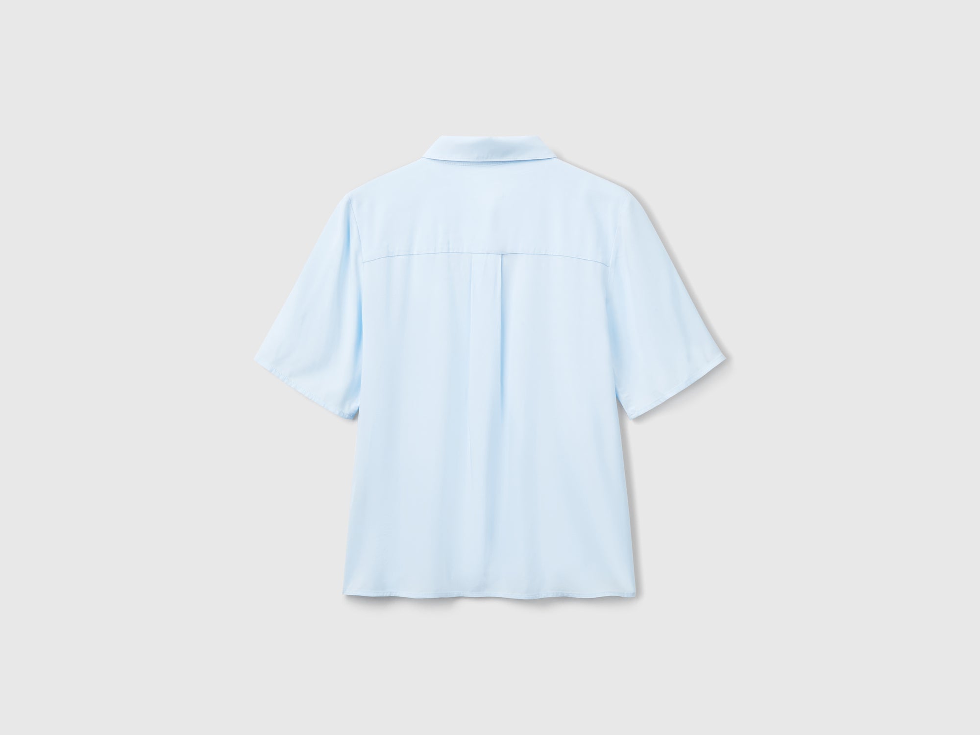 - Características principales: Camisa de corte regular con mangas 3/4, cuello en punta y cierre de botones. Este producto contiene al menos un 30 % de fibras de viscosa LENZING™ ECOVERO™ procedentes de madera controlada o certificada. LENZING™ y ECOVERO™ son marcas registradas de Lenzing AG. Tejido 100 % viscosa; dobladillo ligeramente redondeado; canesú trasero con solapa.