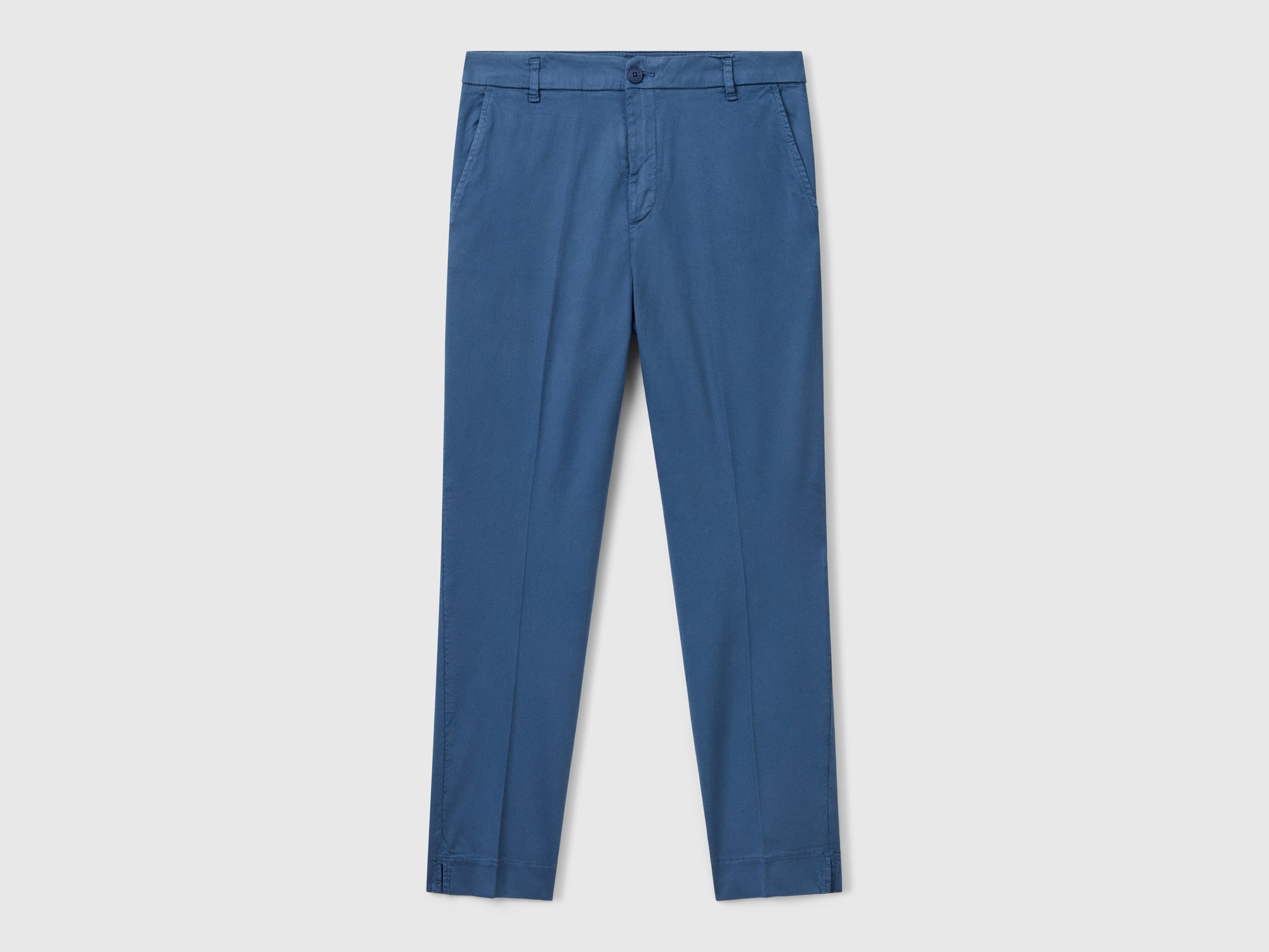 - Características principales: Pantalones chinos largos de algodón elástico con efecto piqué. Corte ajustado y ligeramente cropped con aberturas en la parte inferior de la pernera. Bolsillos delanteros, bolsillos traseros con pinzas y bolsillos de solapa. Sencillos y versátiles, ideales para ocasiones más formales, ya sea con zapatillas o tacones. Algodón elástico con efecto piqué; Trabillas para cinturón; Cierre de cremallera y botón; Herrajes metálicos sin níquel.