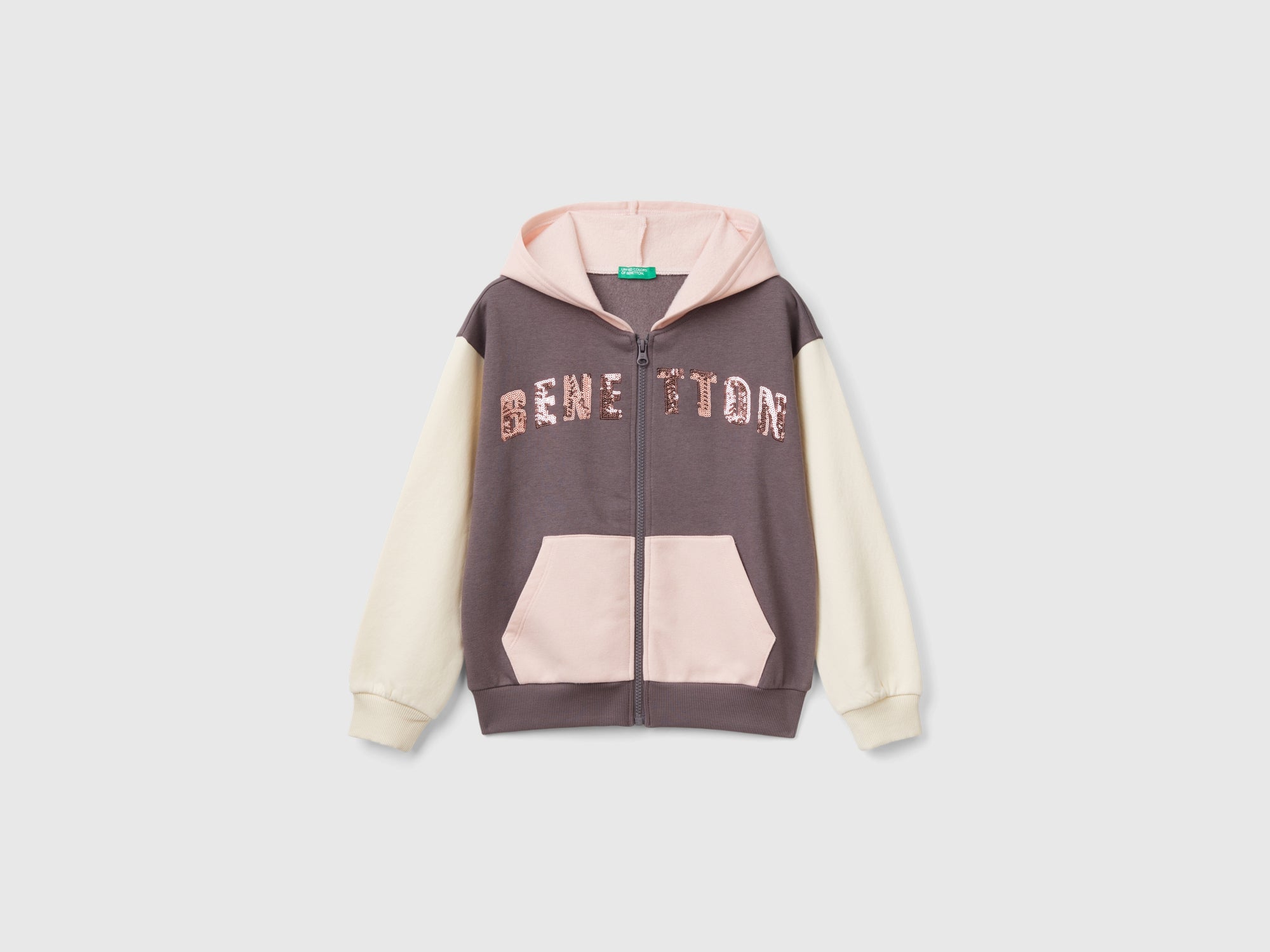 Sudadera de manga larga en suave mezcla de algodón con tacto cálido. Ajuste regular ligeramente corto. Con capucha, bolsillos delanteros y estampado gráfico con lentejuelas bordadas. Para un look brillante.