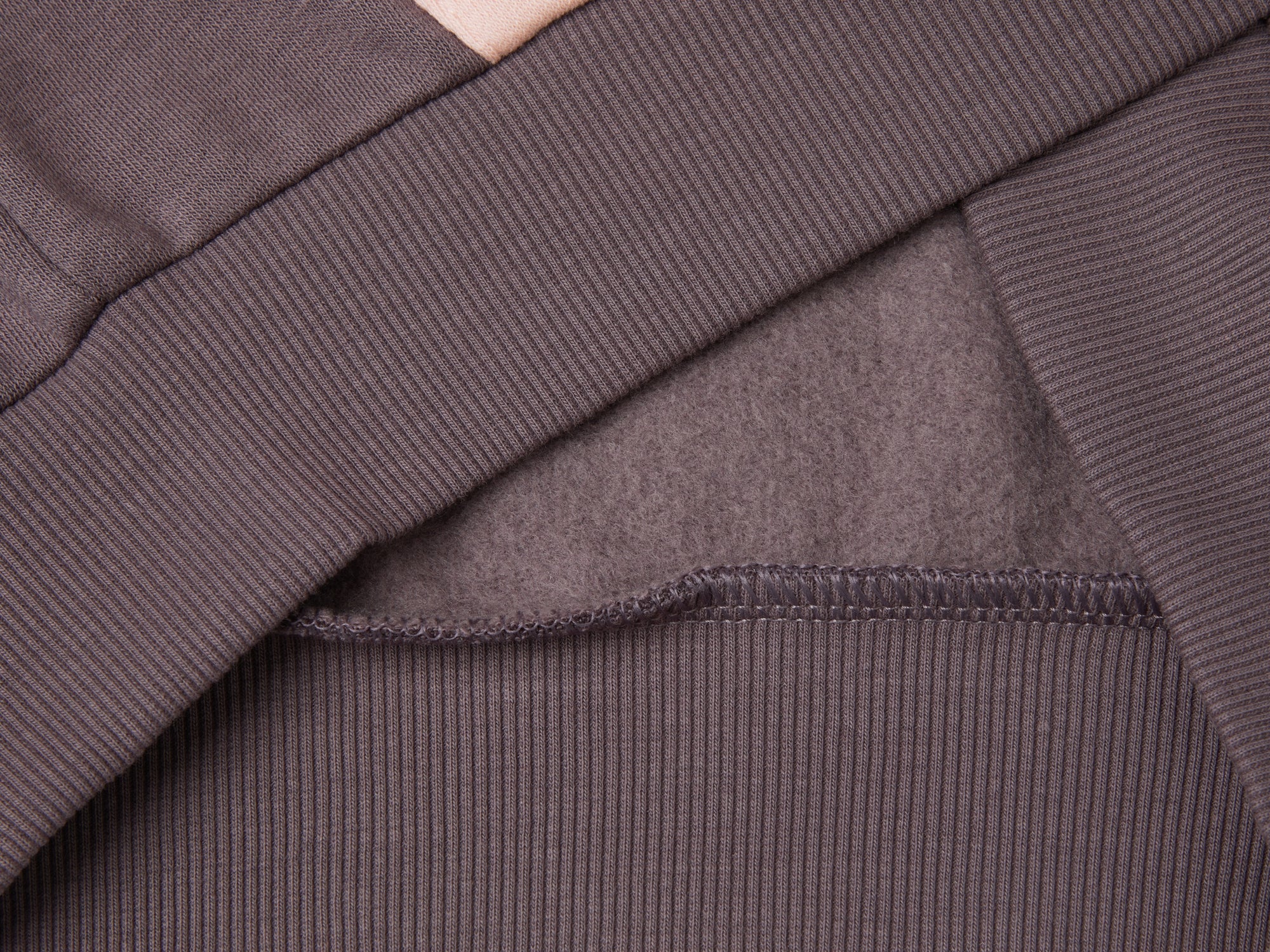 - Características principales: Sudadera perchada de mezcla de algodón; Puños y bajo acanalados; Piezas metálicas sin níquel