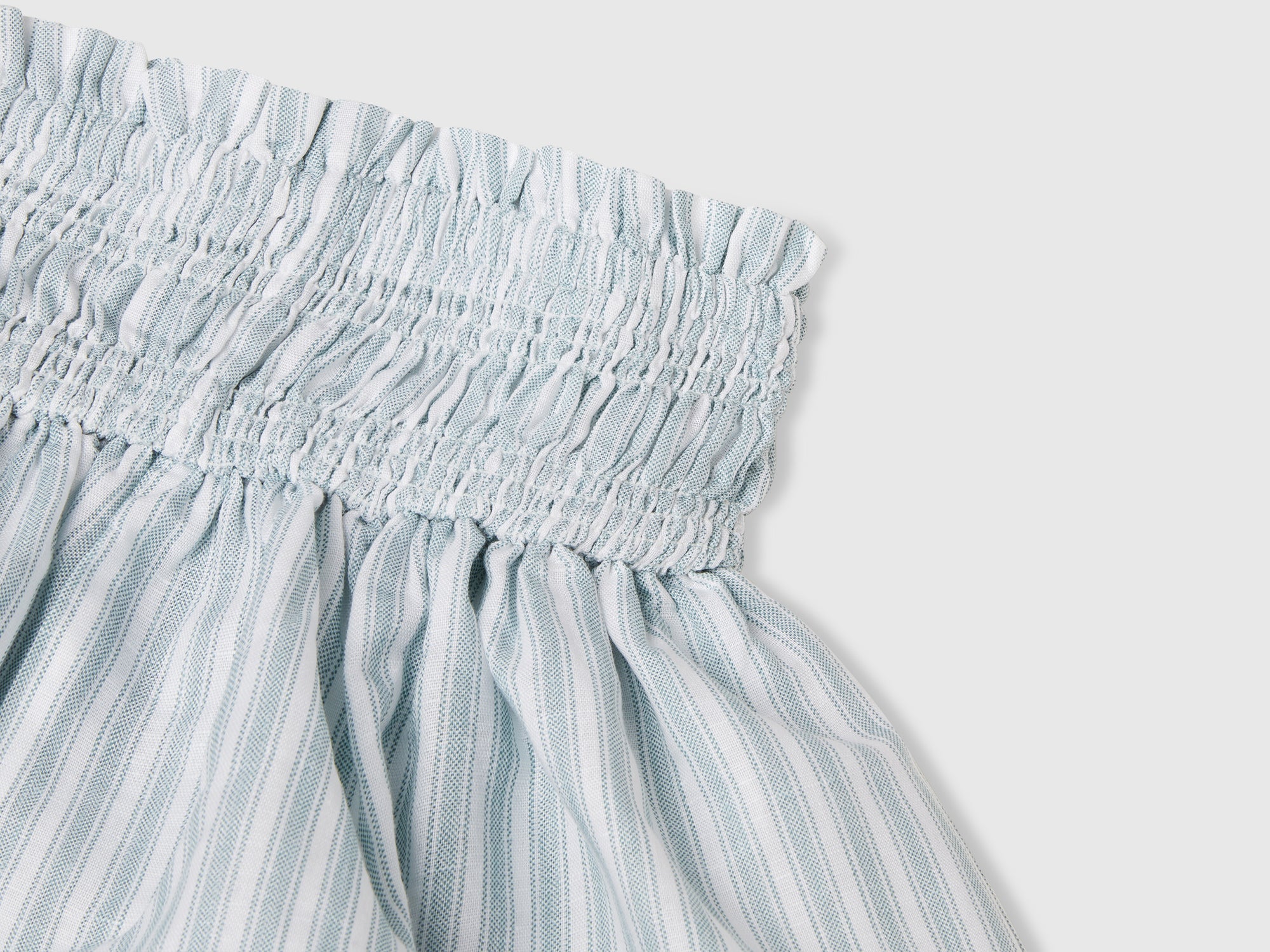- Características principales: Misto lino e cotone; Stampa all over; Ricamo cucito su una base di arricciature in vita