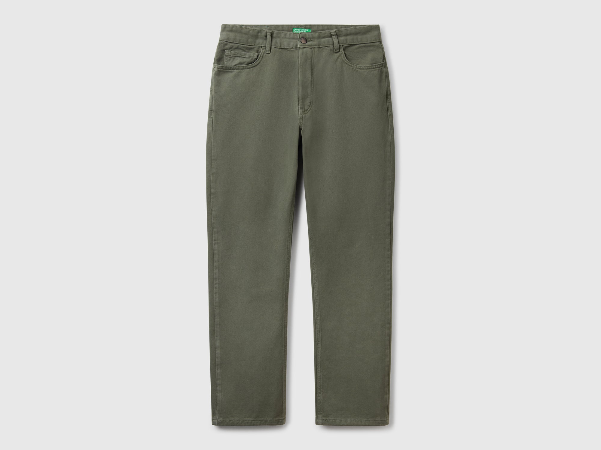 Pantaloni lunghi in denim di puro cotone. Design a cinque tasche, vestibilità regolare con gamba dritta. Pratica apertura a zip e bottone. Un capo quotidiano dal look autentico.