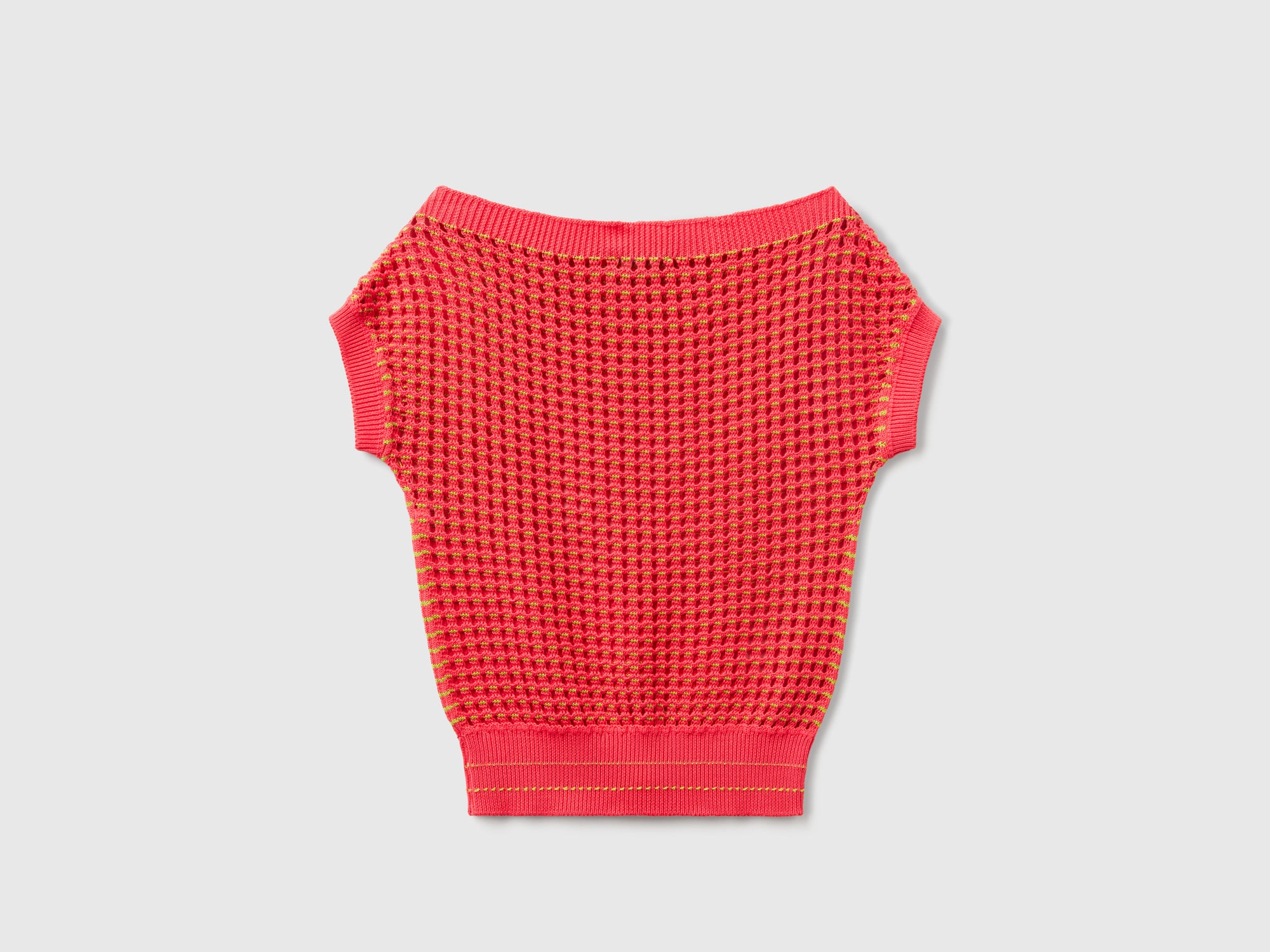 - Características principales: Suéter de algodón puro con cuello barco y manga corta. Costuras especiales de crochet y corte holgado. Una prenda fresca y ligera con un toque romántico. 100 % algodón; dobladillo acanalado.