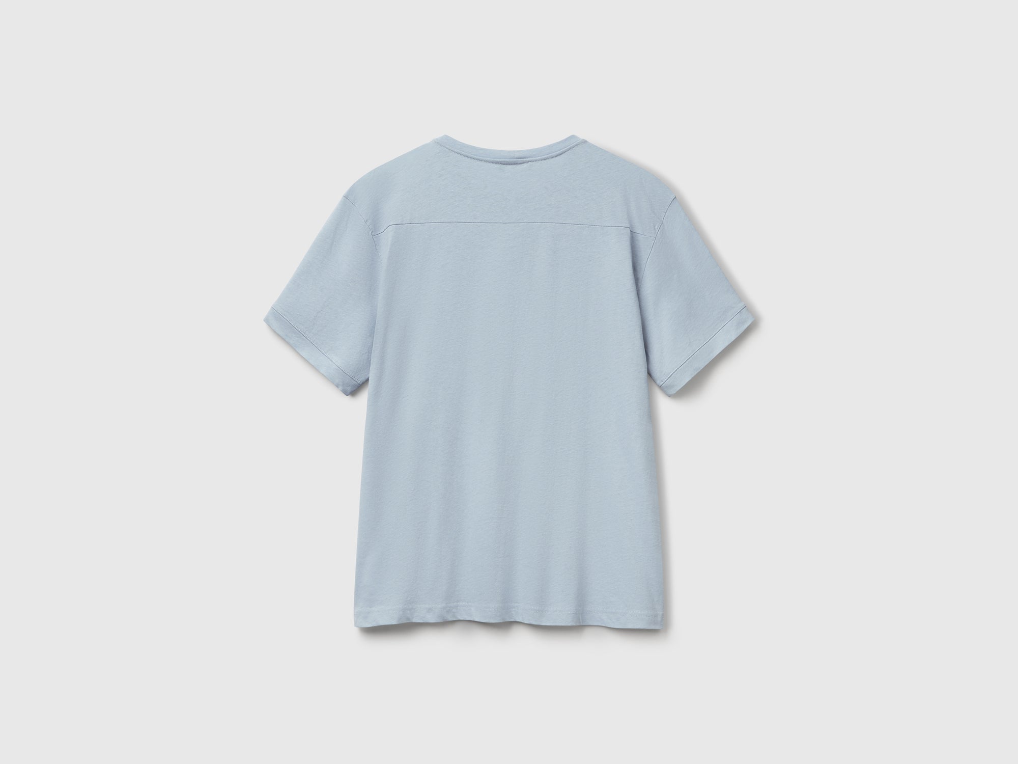 T-shirt in tessuto leggero di misto cotone e lino. Scollo rotondo, manica corta e taschino applicato lato cuore. Per look casual da indossare tutti i giorni.