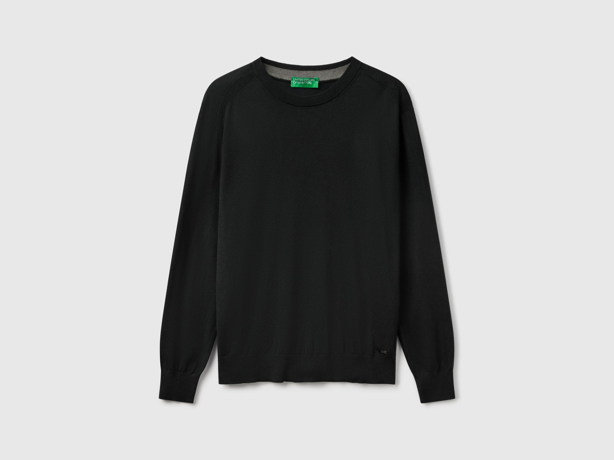 Maglia girocollo in morbido tessuto di misto cotone, viscosa e seta. Manica lunga e placchetta logo in metallo applicata sul fondo a sinistra. Basico e versatile, da indossare nel tempo libero con una t-shirt oppure in ufficio, sovrapposto ad una camicia.
