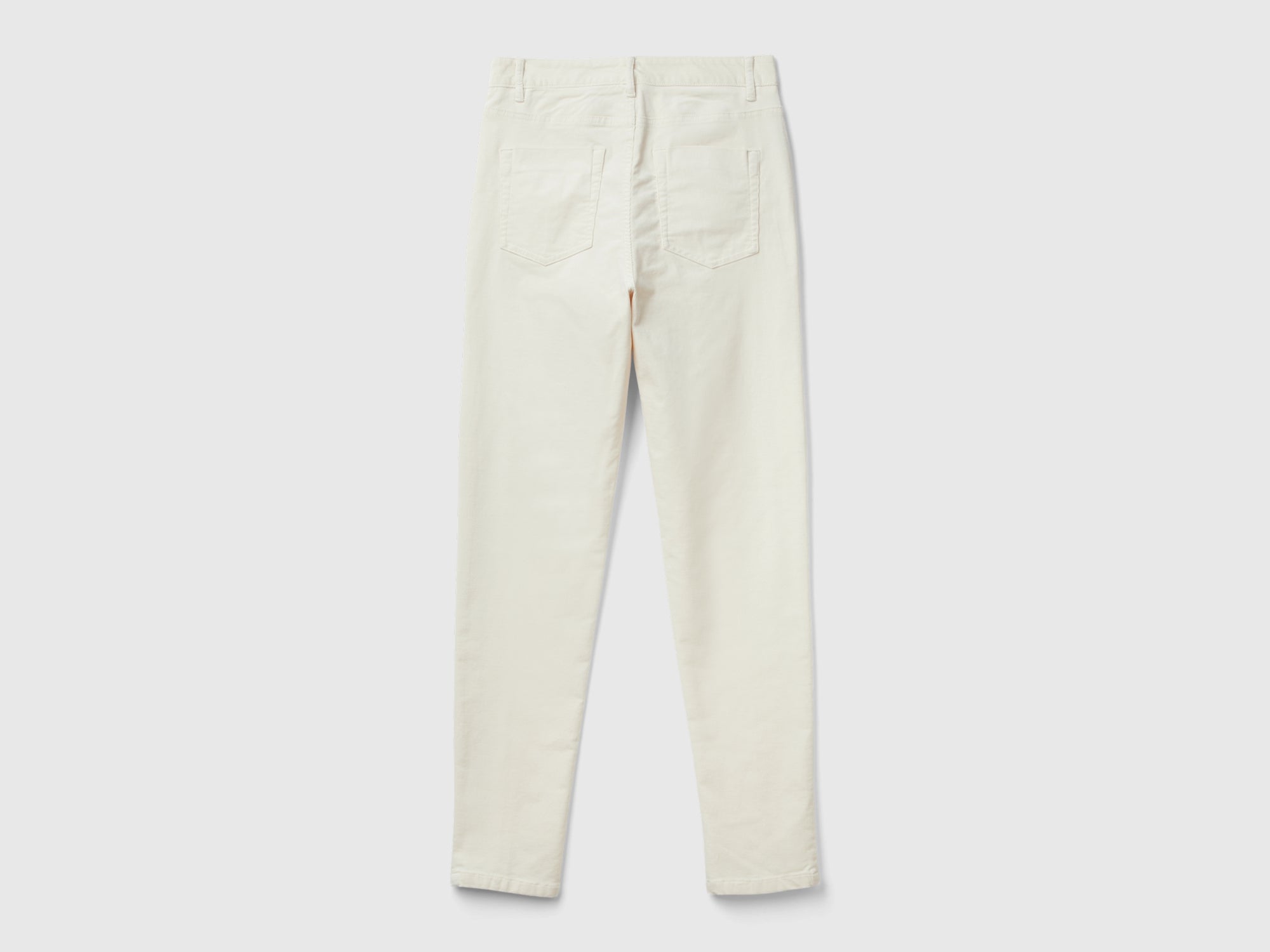 Pantalón de cinco bolsillos de pana de mezcla de algodón y Modal elástico de rayas finísimas, casi liso. Cintura con trabillas y cierre de cremallera y botón. Casual y femenino, increíblemente versátil.