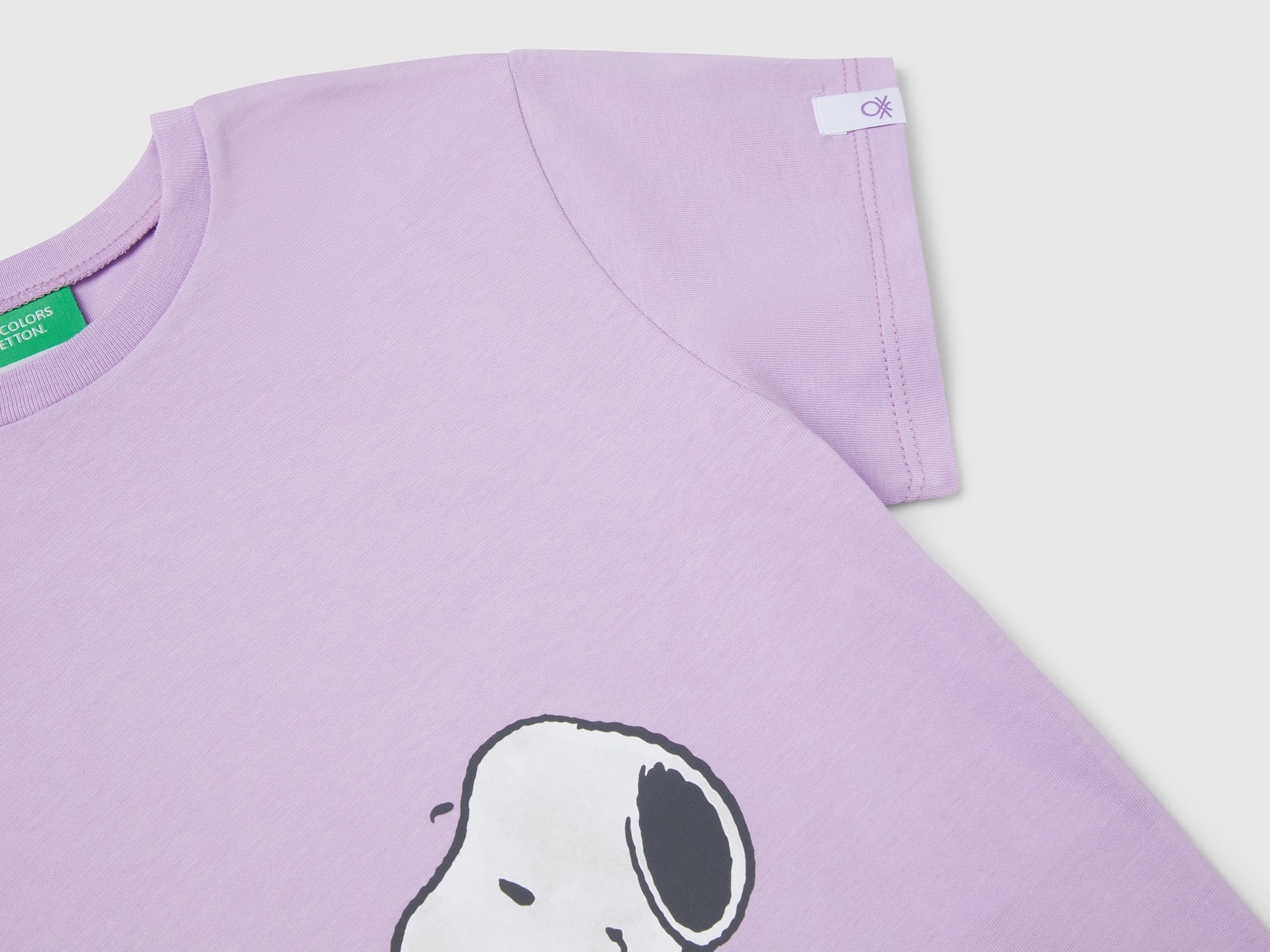 - Características principales: Jersey di cotone biologico; Collo a costine; Stampa ad acqua; Etichetta logo sul fondo manica; Copyright: ©2025 Peanuts Worldwide LLC