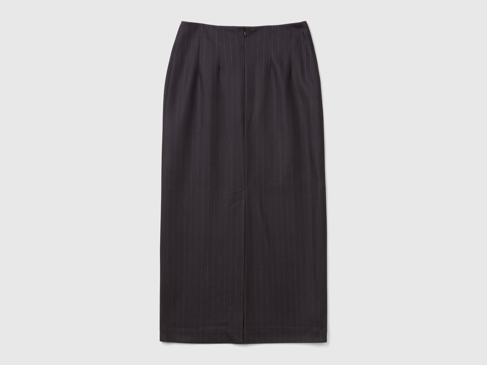 Gonna midi in misto viscosa elasticizzata con leggera gessatura. Apertura invisibile con zip sul retro e spacco al centro dietro. Un classico sempre attuale.
