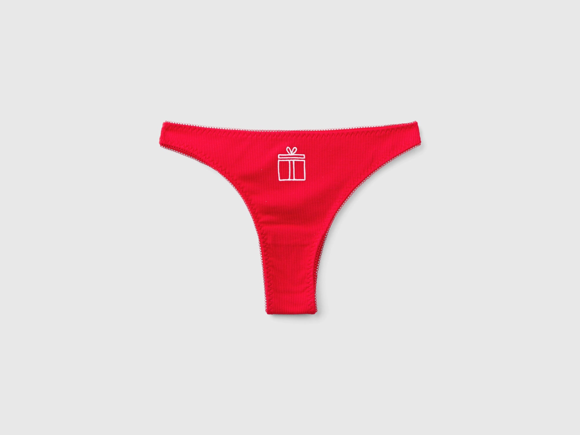 Mutande classiche in morbido tessuto di misto cotone e viscosa elasticizzata. Bordo smerlato in vita e sulle sgambature. Pacco regalo ricamato sul davanti. Perfette anche come idea regalo.