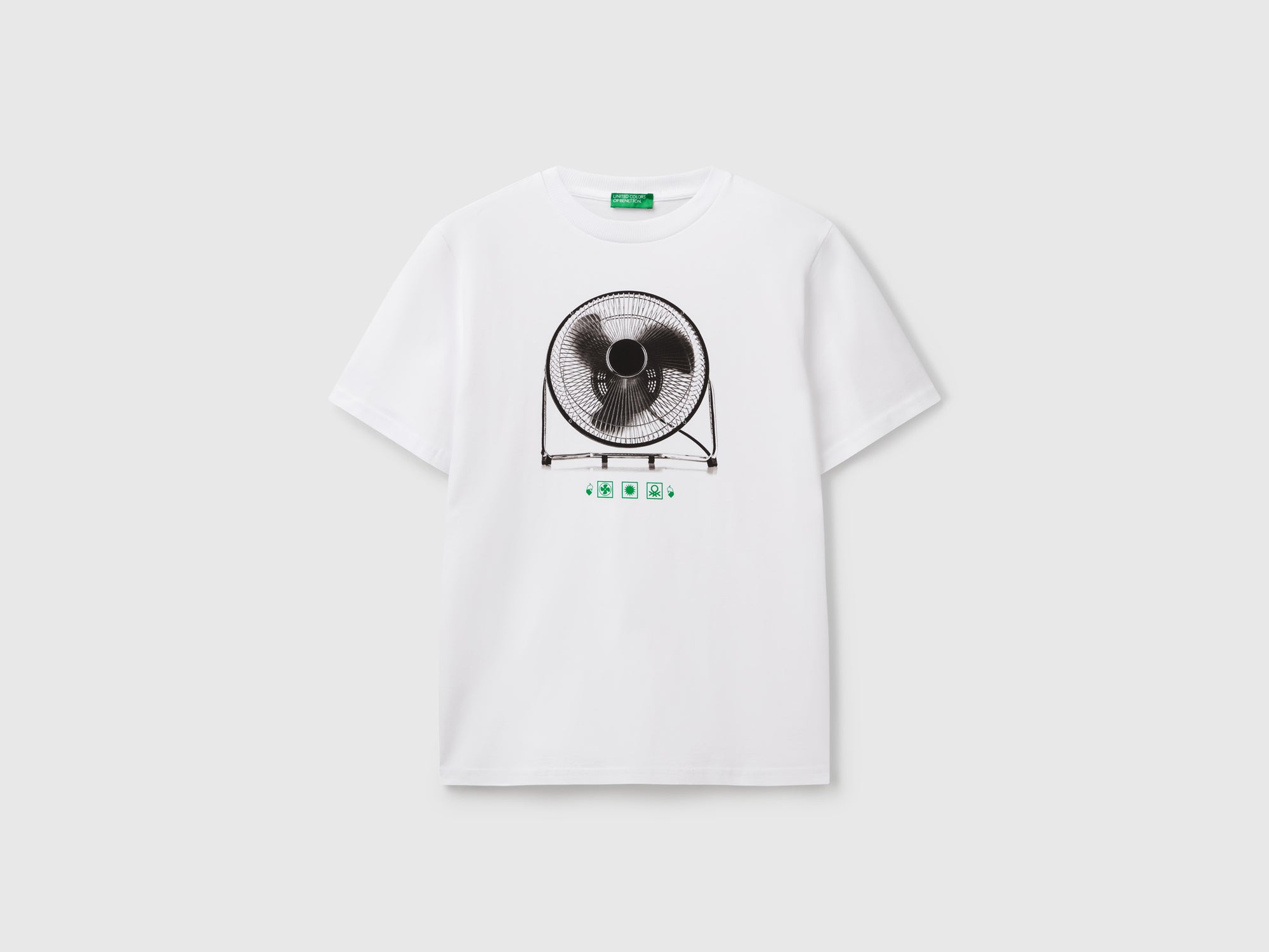 Maglietta girocollo in puro cotone dalla vestibilità rilassata. Manica corta e stampa fotografica sul davanti. Design contemporaneo e dna cittadino.