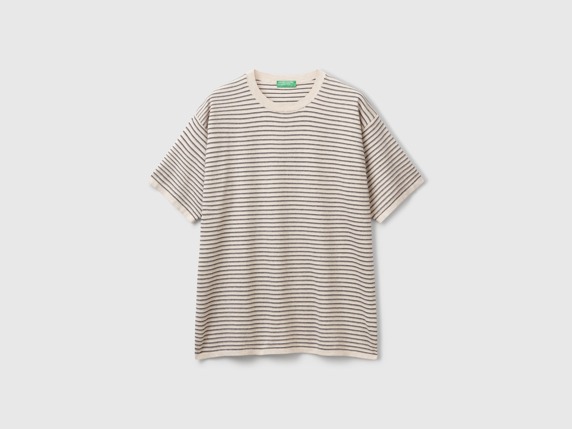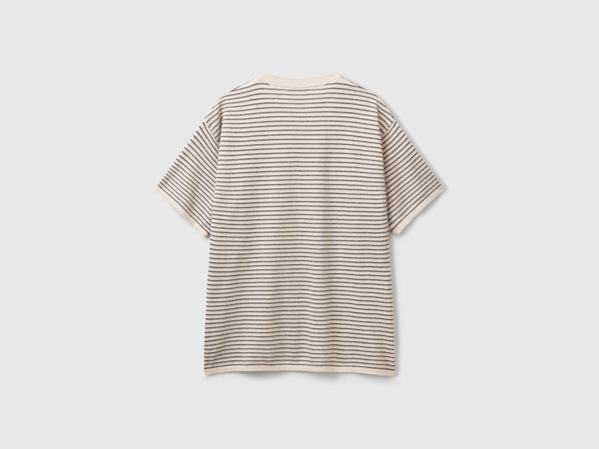 Maglietta girocollo in morbido filato di puro cotone effetto mélange. Vestibilità rilassata con manica corta e particolare lavorazione che crea un motivo a righe. Per un casual look contemporaneo.