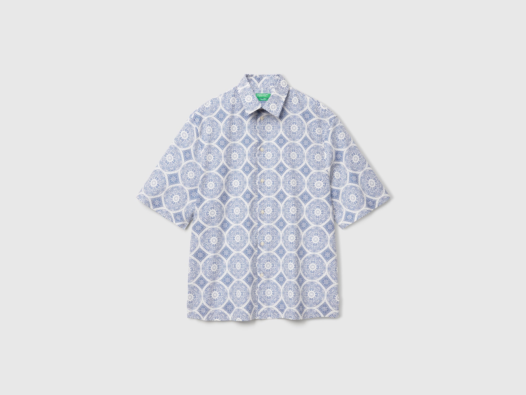 Camicia a manica corta dalla vestibilità rilassata con stampa fantasia su tutto il capo. Colletto classico e abbottonatura frontale. Questo capo è realizzato al 100% con cotone biologico certificato OCS. Certificato da ICEA - ICEA - TX - 611. I prodotti certificati secondo l'Organic Content Standard (OCS) contengono contenuti biologici che sono stati verificati in modo indipendente in ogni fase della filiera, dal riciclatore al prodotto finito.