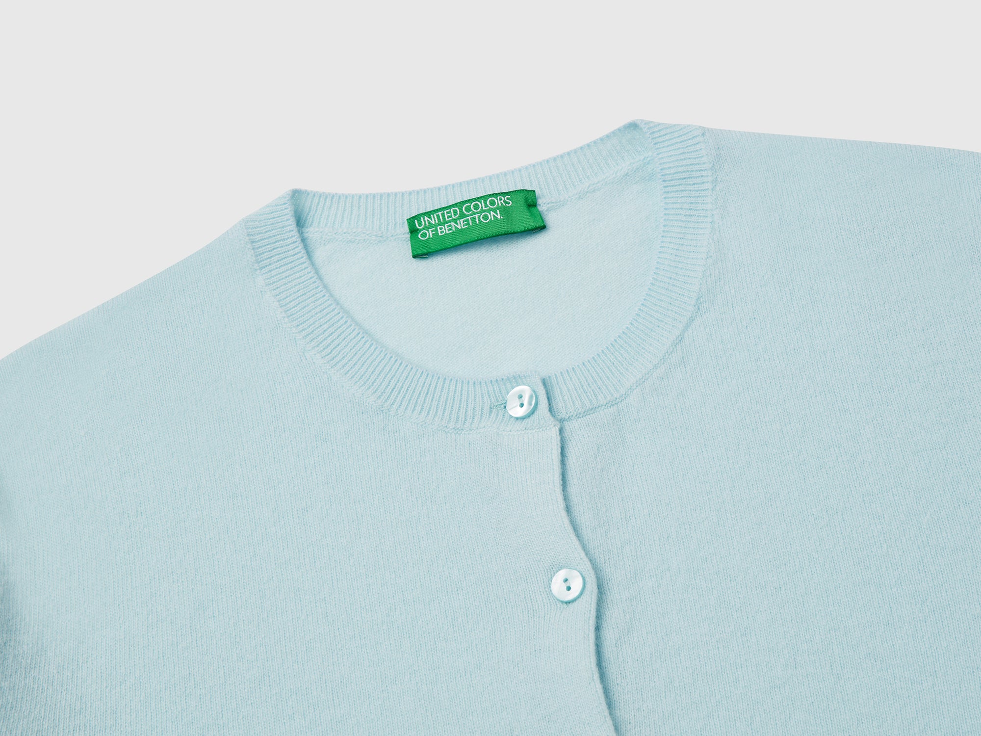 Cardigan con scollo rotondo a manica lunga in pura lana Merino, calda, leggera e piacevole al tatto. Un classico del guardaroba femminile. La presenza del logo Woolmark garantisce l’alta qualità dei capi attraverso l’applicazione e il monitoraggio di standard specifici nella produzione della lana, dall’allevamento al prodotto finale.