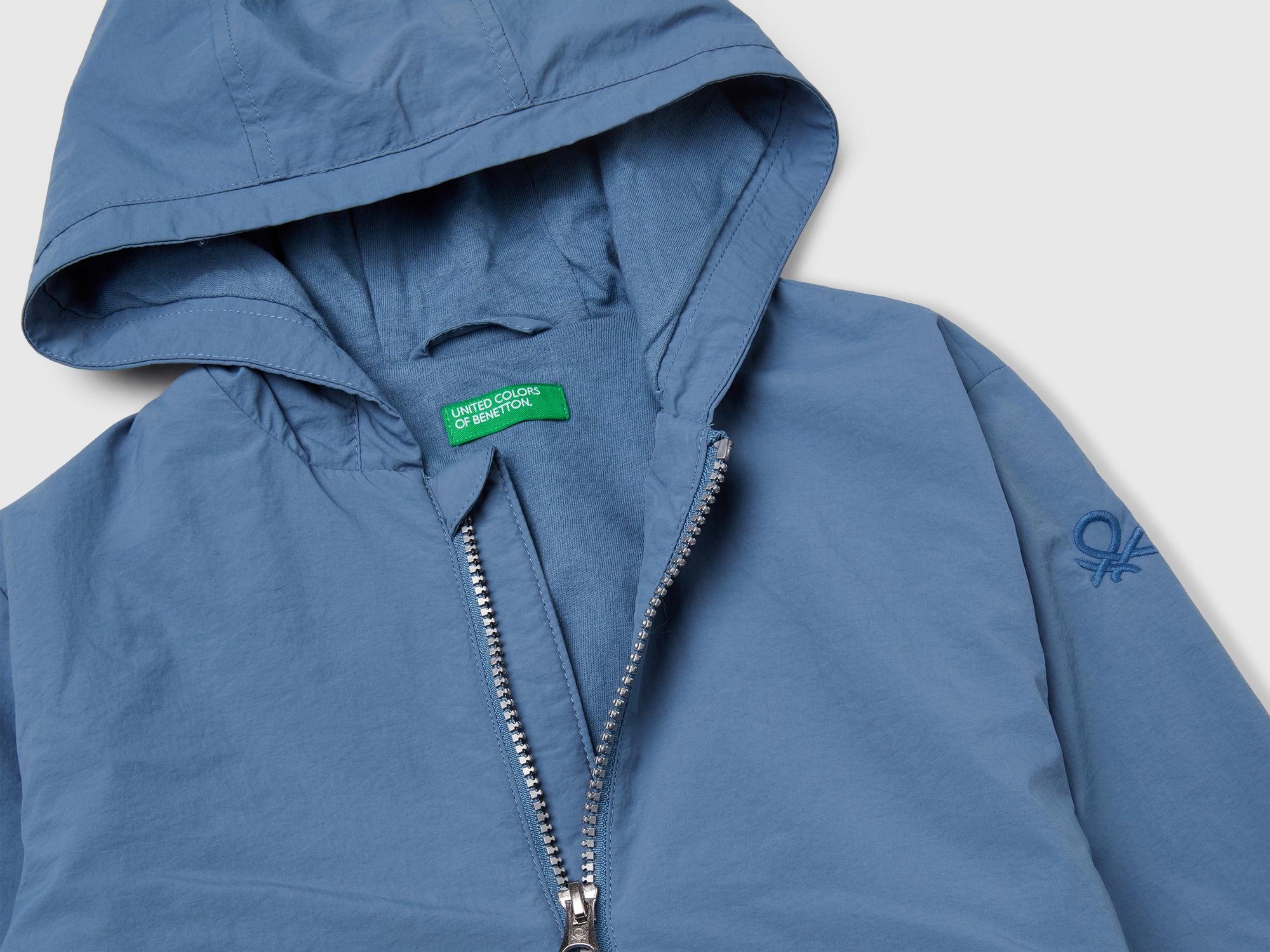 Giubbino in nylon con cappuccio da bambino azzurro | Benetton Outlet