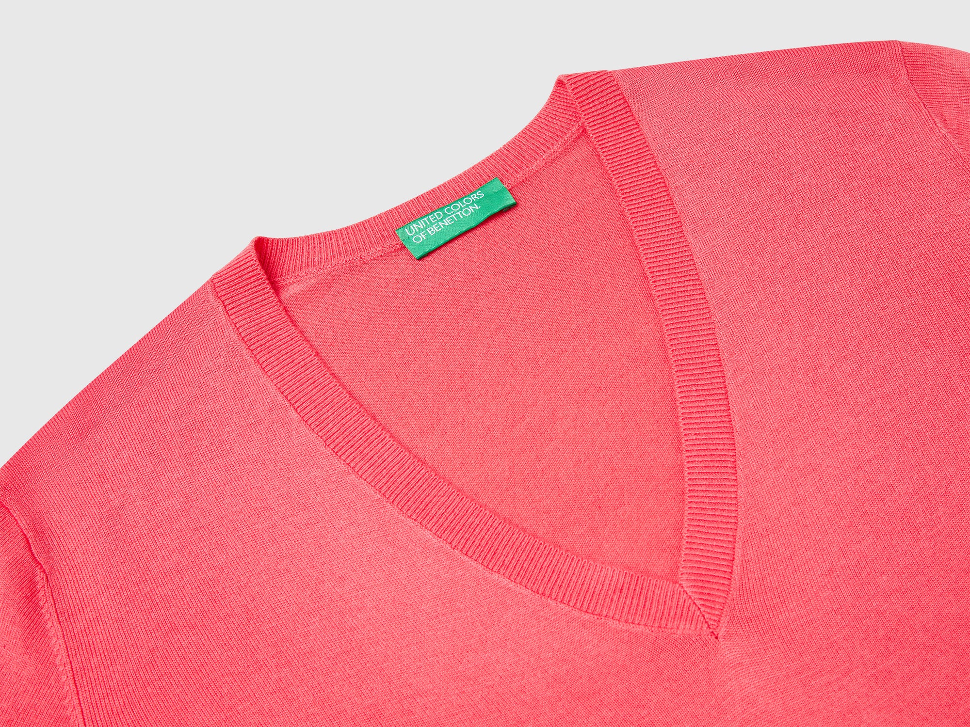 Maglioncino in misto seta e viscosa dalla mano molto morbida. Scollo a V e manica lunga. Un capo dalla vestibilità regolare, confortevole e delicato sulla pelle.