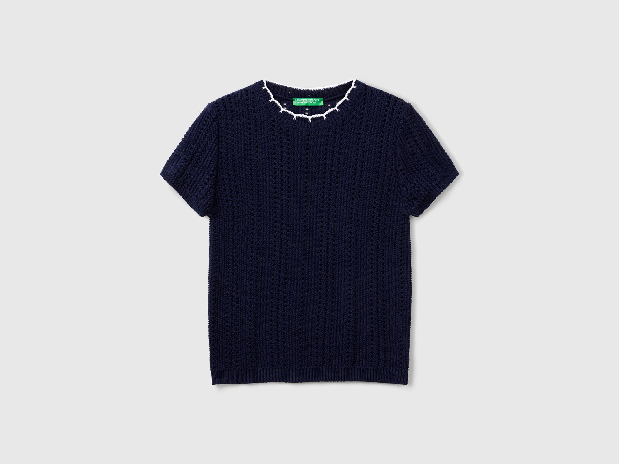 Maglia traforata in puro cotone da donna blu scuro | Benetton Outlet Maglia traforata in puro cotone da donna blu scuro 2 | Benetton Outlet Maglia traforata in puro cotone da donna blu scuro 3 | Benetton Outlet