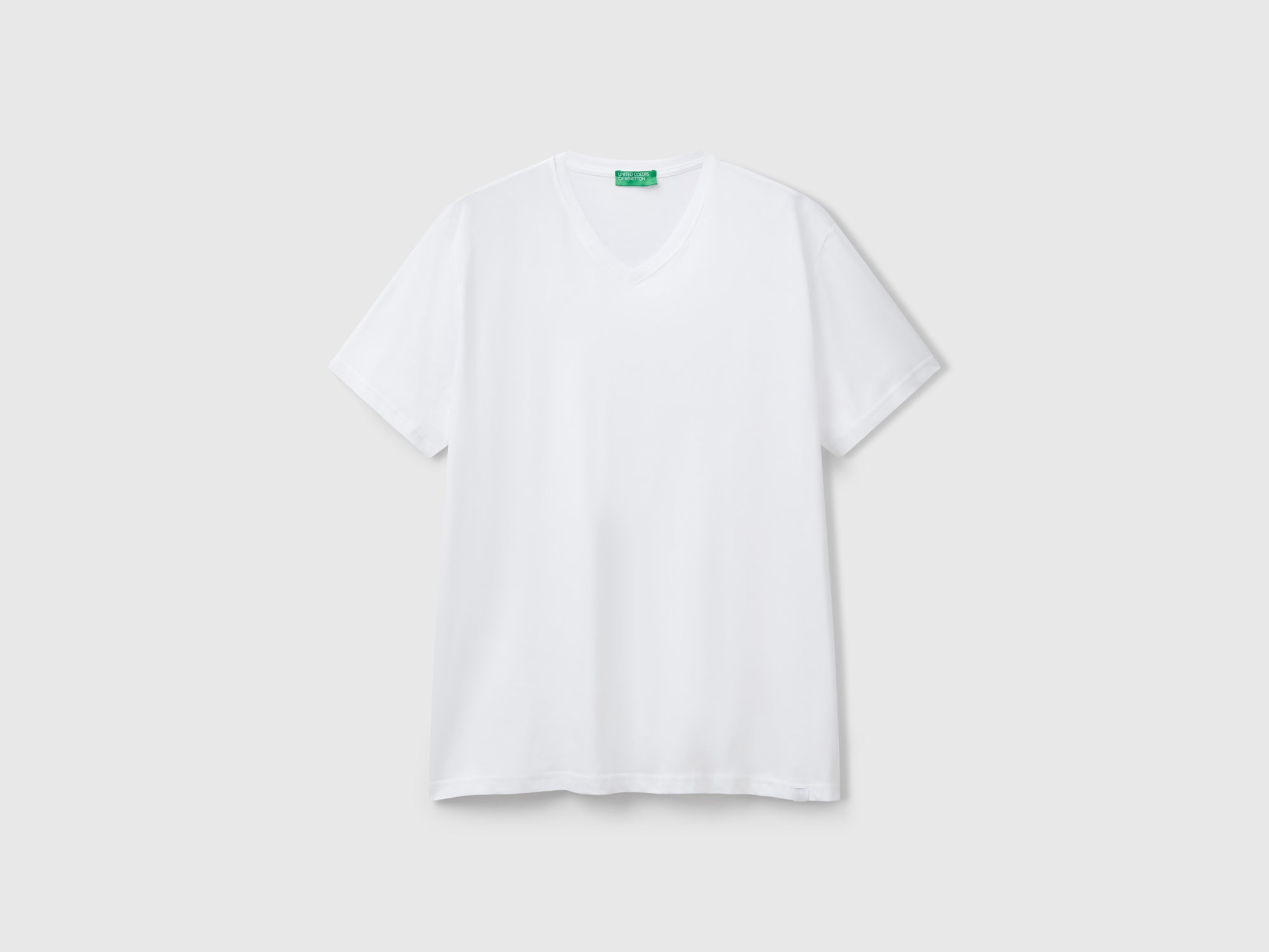 Maglietta a manica corta con scollo a V. Realizzata in 100% cotone a fibra lunga, un materiale prestigioso caratterizzato da elevata elasticità, resistenza e morbidezza.