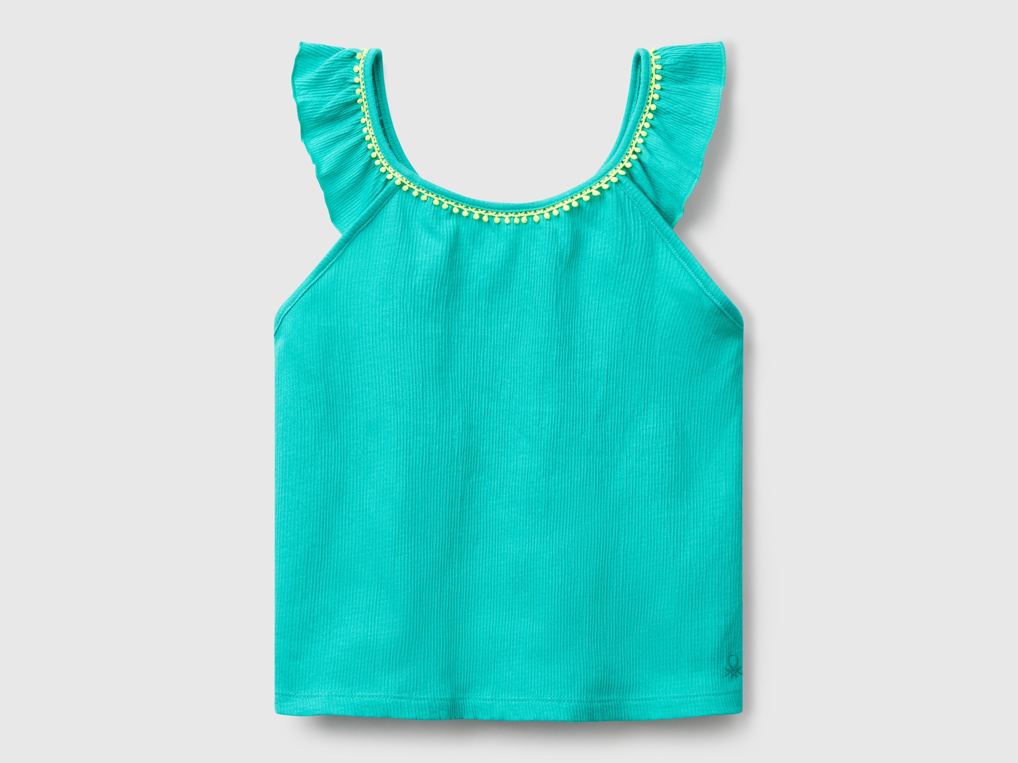 Top con volant da bambina verde acqua | Benetton Outlet Top con volant da bambina verde acqua 2 | Benetton Outlet Top con volant da bambina verde acqua 3 | Benetton Outlet