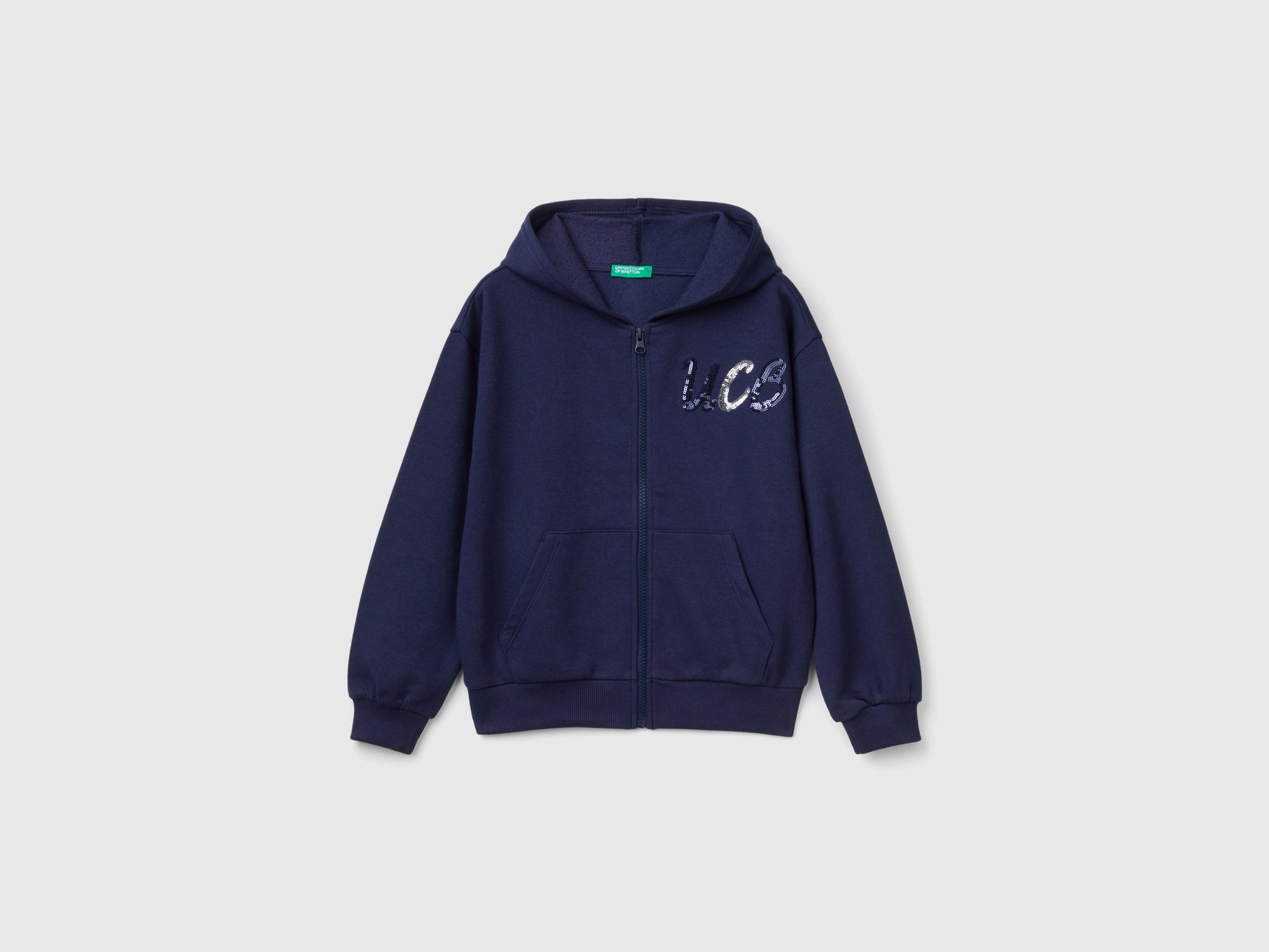- Caratteristiche principali: Felpa garzata di misto cotone; Polsi e fondo a costine; Parti metalliche nickel free