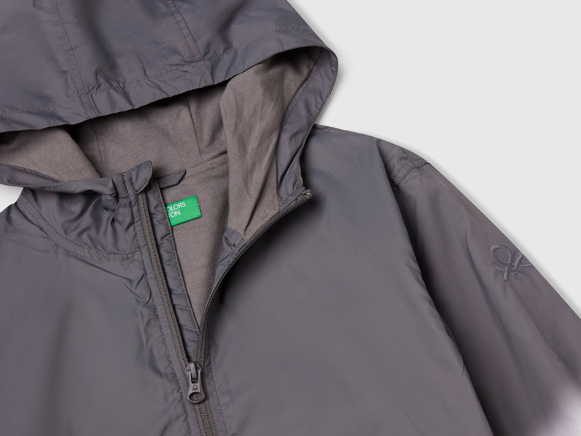 Giubbino in nylon con cappuccio da bambino grigio chiaro | Benetton Outlet