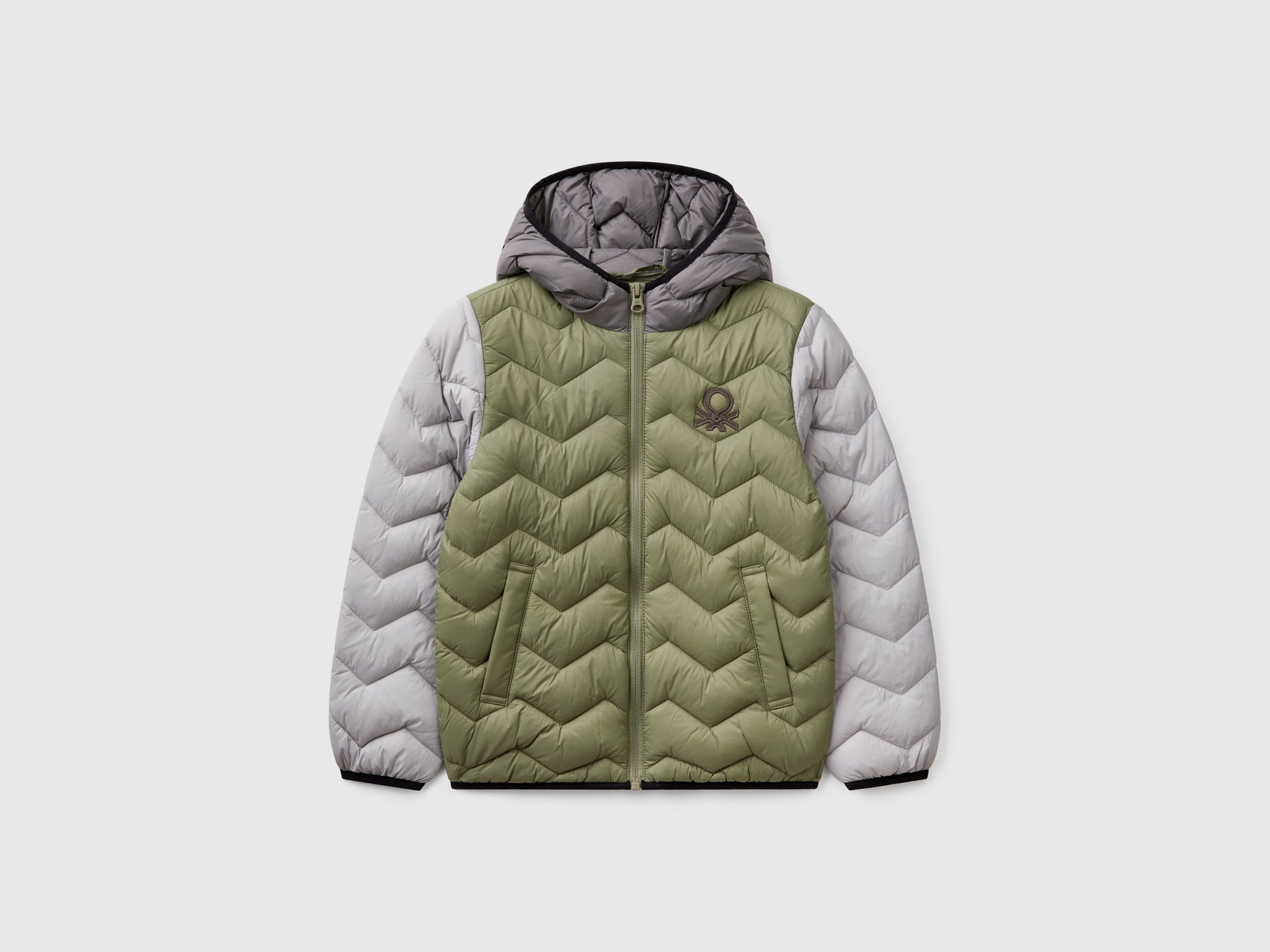Giubbotto imbottito con cappuccio da bambino verde | Benetton Outlet