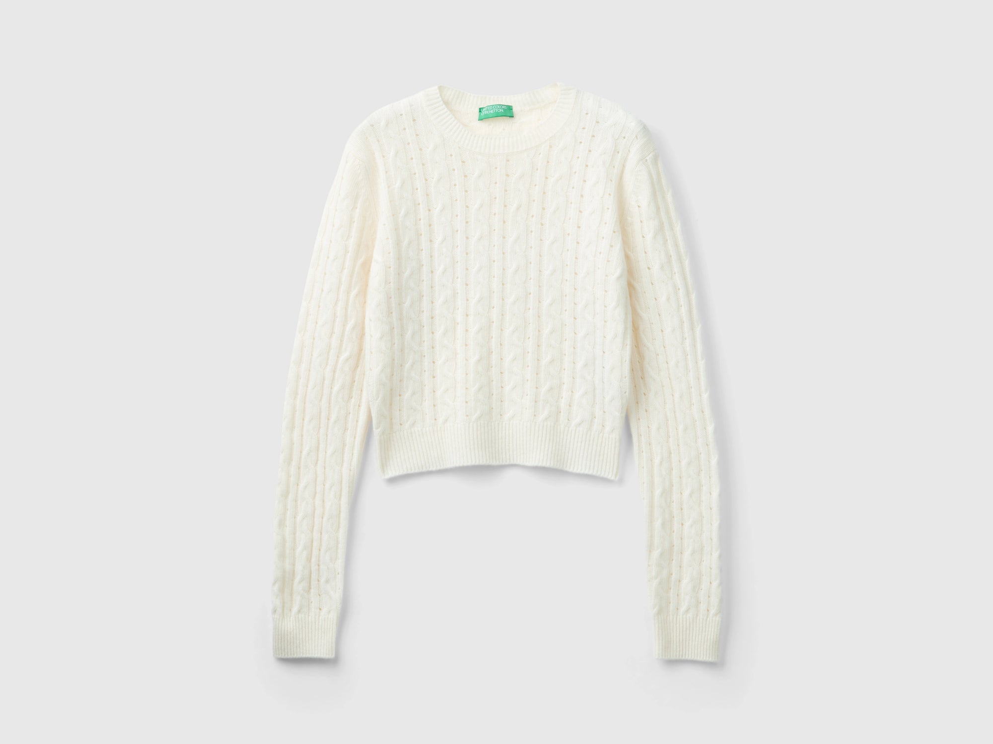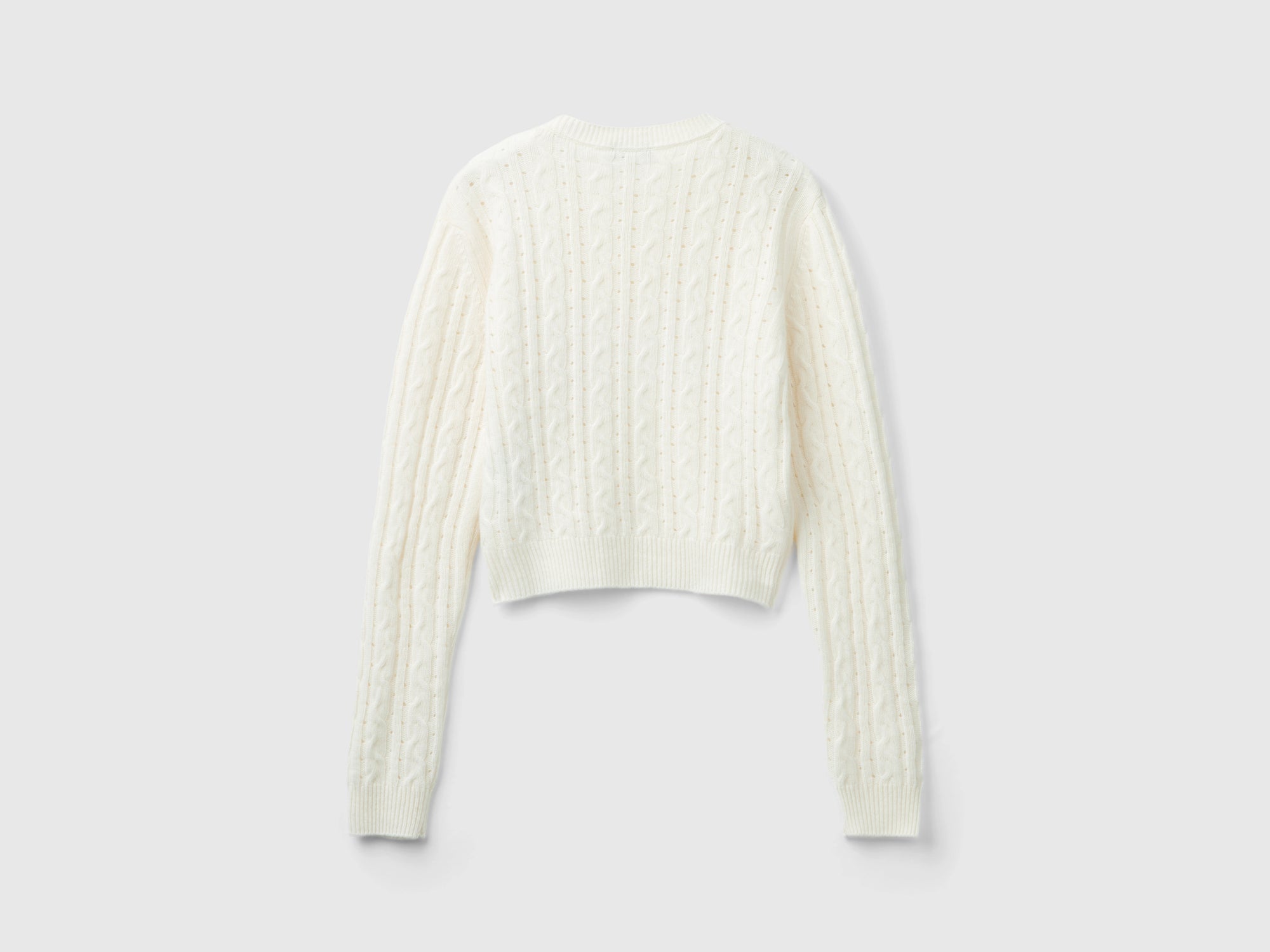 Maglia cropped con trecce e trafori da donna bianco panna | Benetton Outlet Maglia cropped con trecce e trafori da donna bianco panna 2 | Benetton Outlet Maglia cropped con trecce e trafori da donna bianco panna 3 | Benetton Outlet