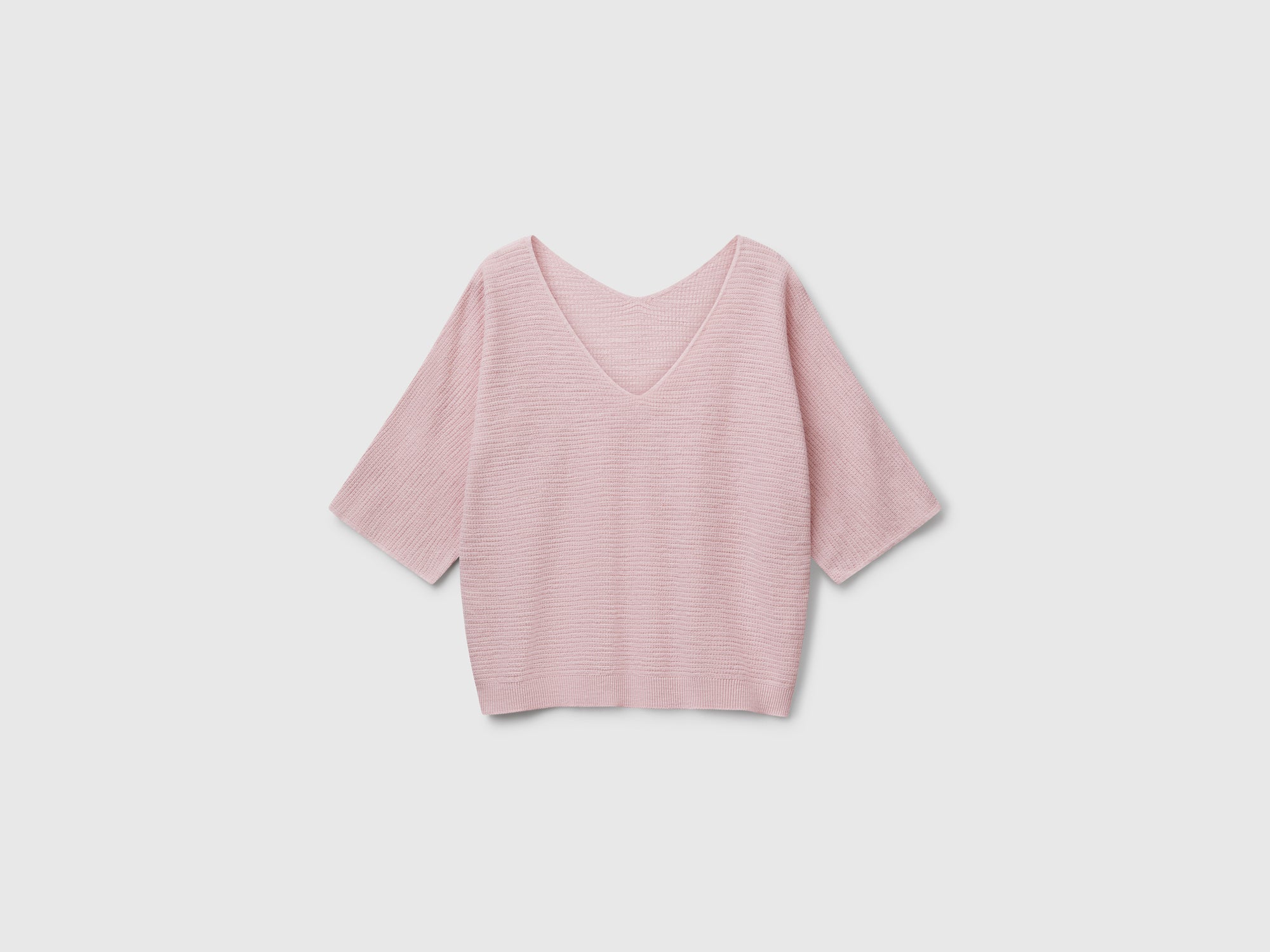 Maglioncino in misto cotone e lino con manica a pipistrello e vestibilità corta. Particolare costruzione reversibile front/back: può essere indossata con scollo a V o rotondo, in base al proprio mood. Perfetta anche sotto una giacca.