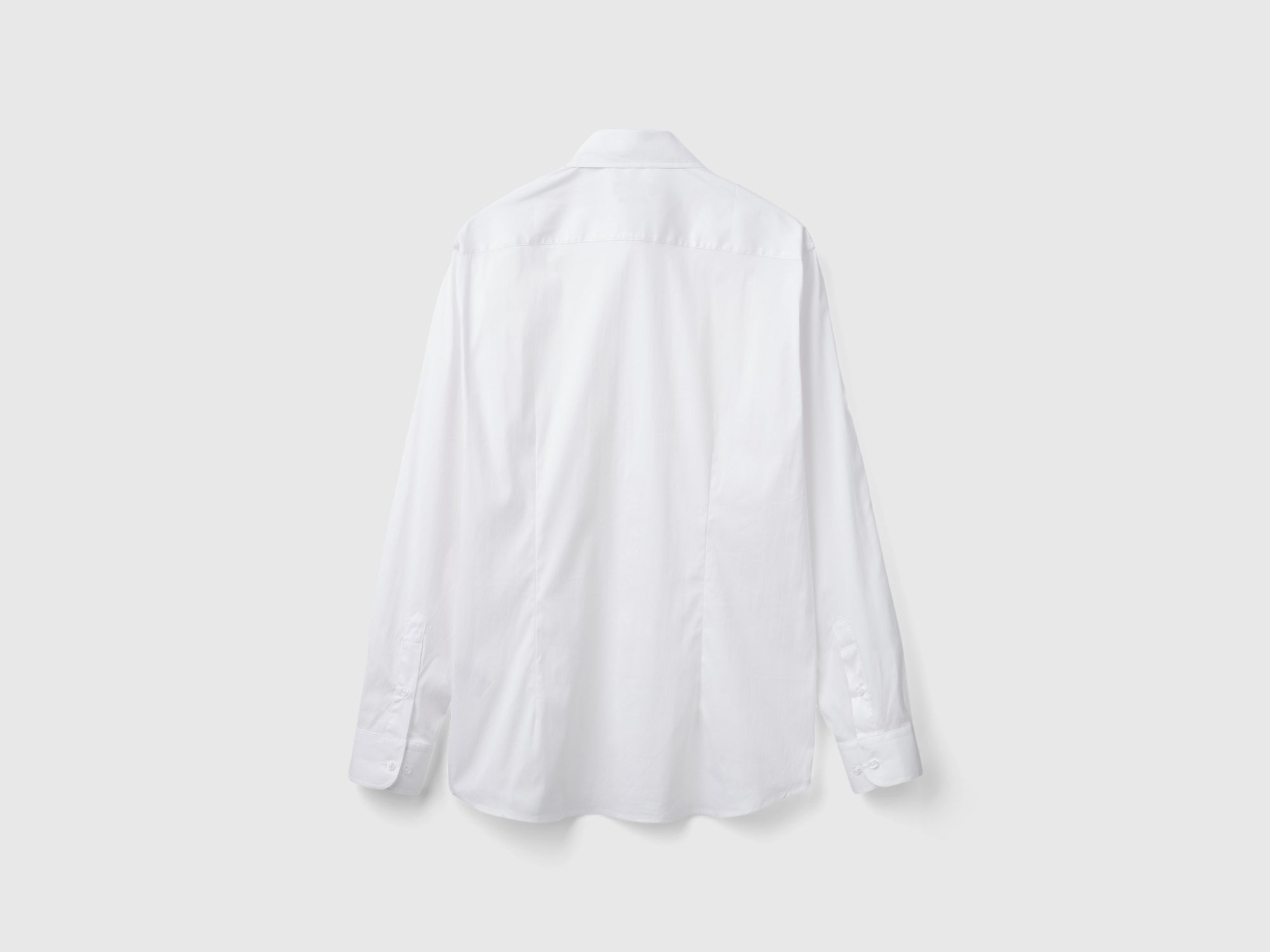 Camicia a manica lunga dalla vestibilità asciutta in misto cotone elasticizzato. Colletto classico, carré e pinces sul retro, fondo stondato. Stile minimal per un capo che non può mancare nel guardaroba.