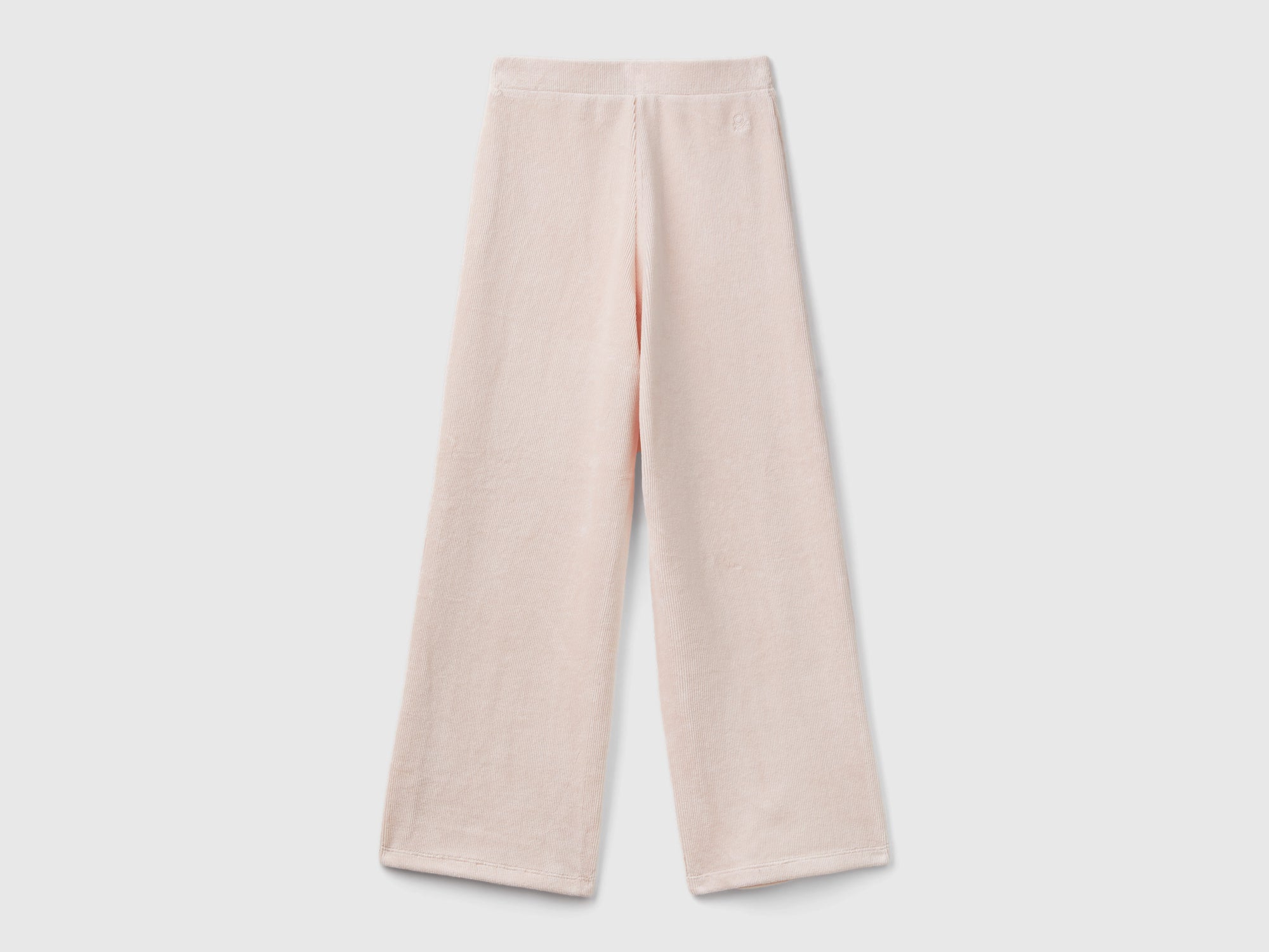Pantaloni lunghi in morbida ciniglia di misto cotone elasticizzato. Gamba ampia e morbida, comodo elastico interno in vita. Cool, confortevoli e quotidiani.