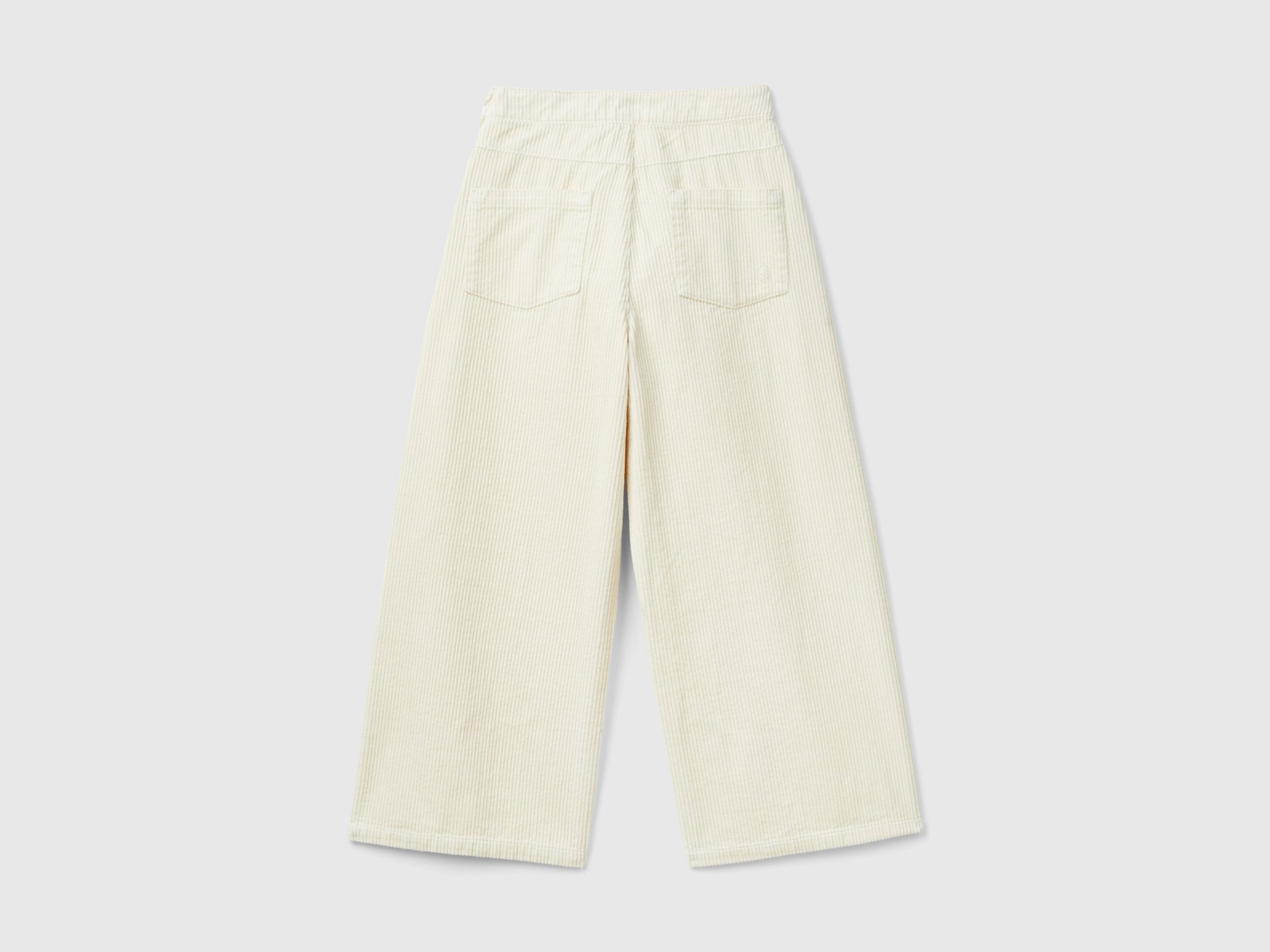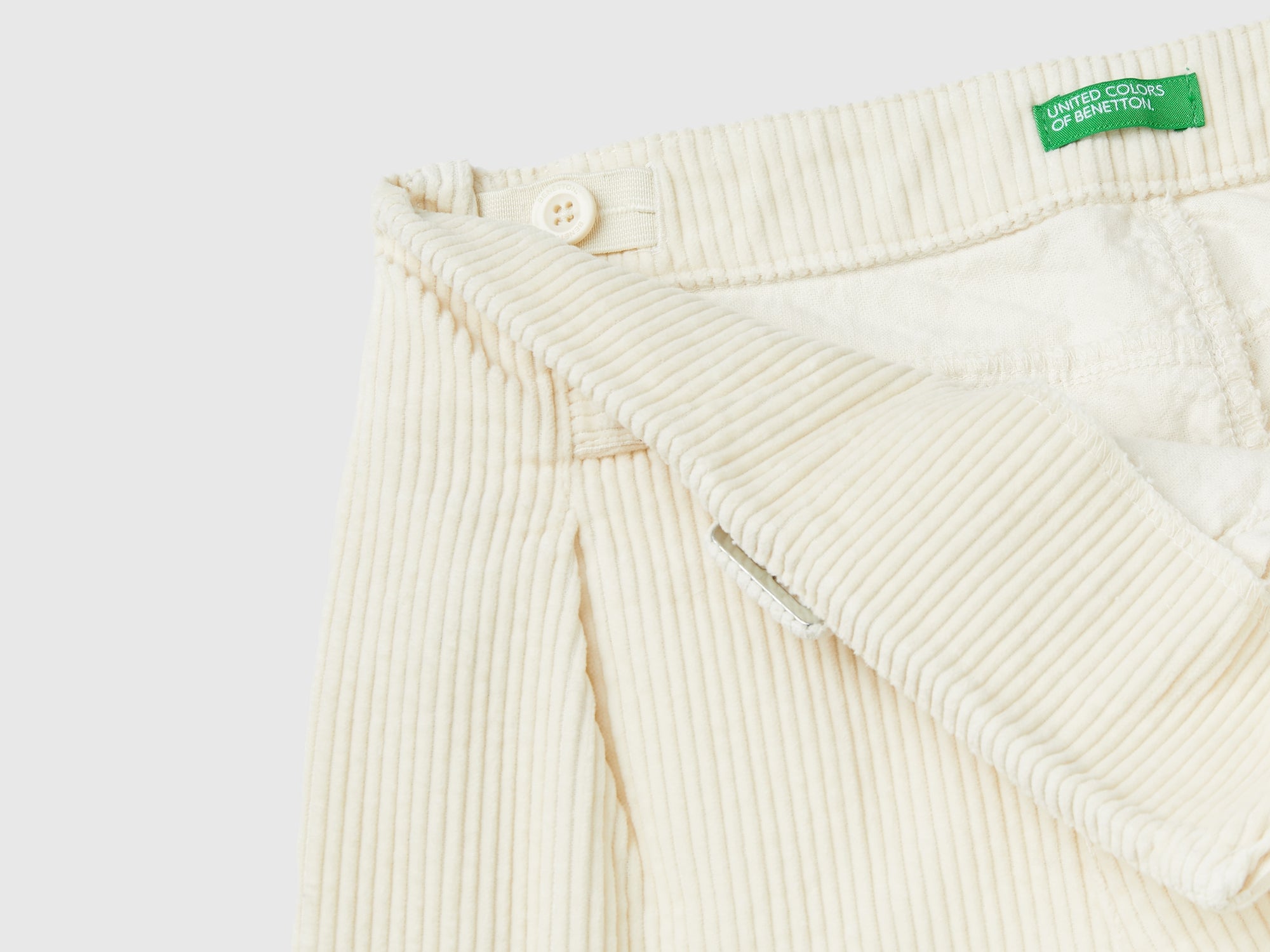 Pantaloni lunghi in velluto di puro cotone a costine sottili. Vestibilità ampia con cintura in vita e taschini applicati sul retro. Ideali da indossare anche con una camicia.