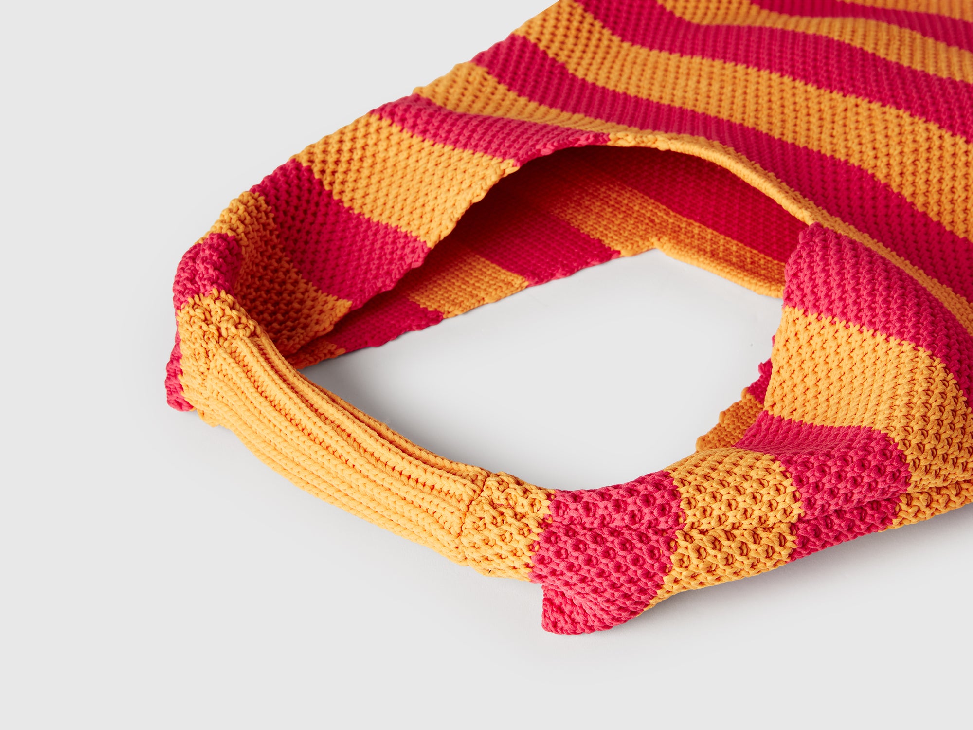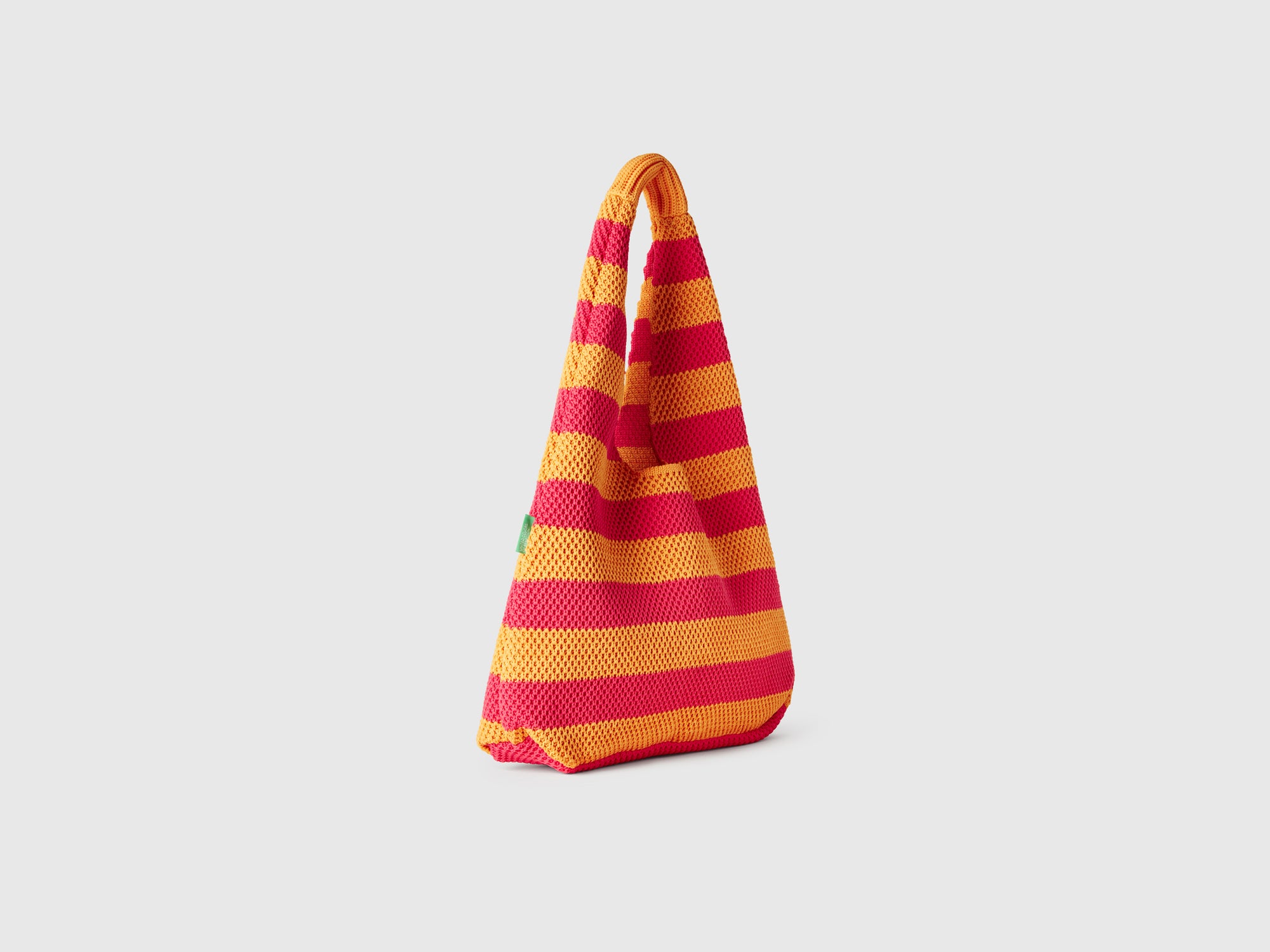 Borsa a spalla con lavorazione crochet a righe bicolor. Per outfit cool e raffinati.