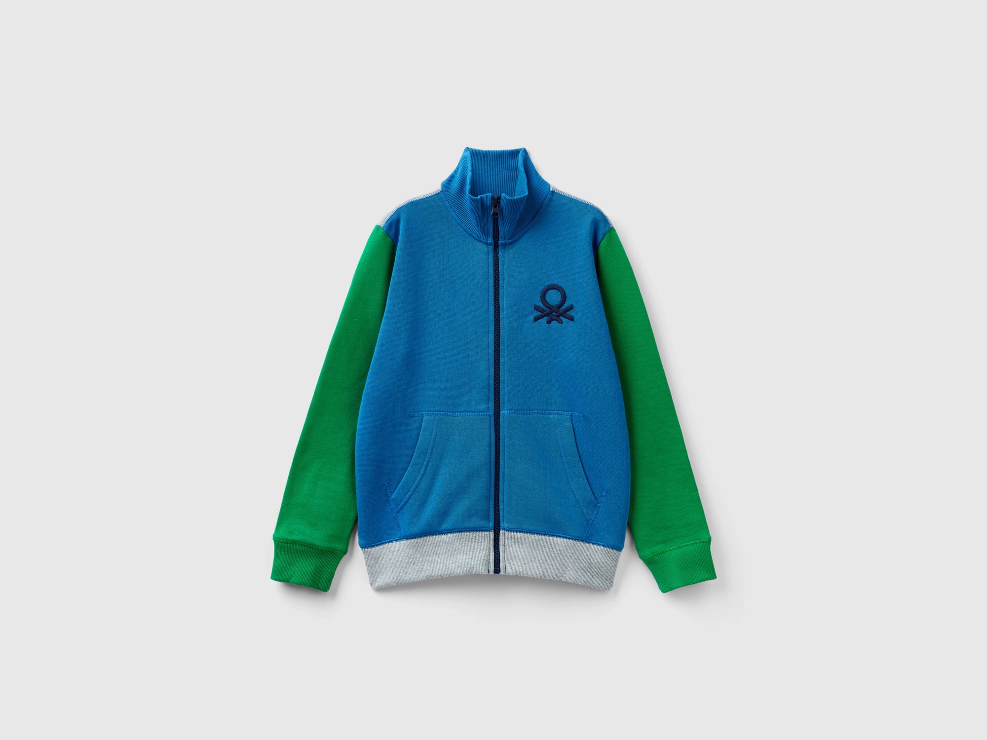Felpa in puro cotone dalla mano consistente ma leggera. Collo alto e pratica apertura a zip. Tasche applicate davanti e ricamo logo lato cuore. Vestibilità ampia per un look comodo e casual.
