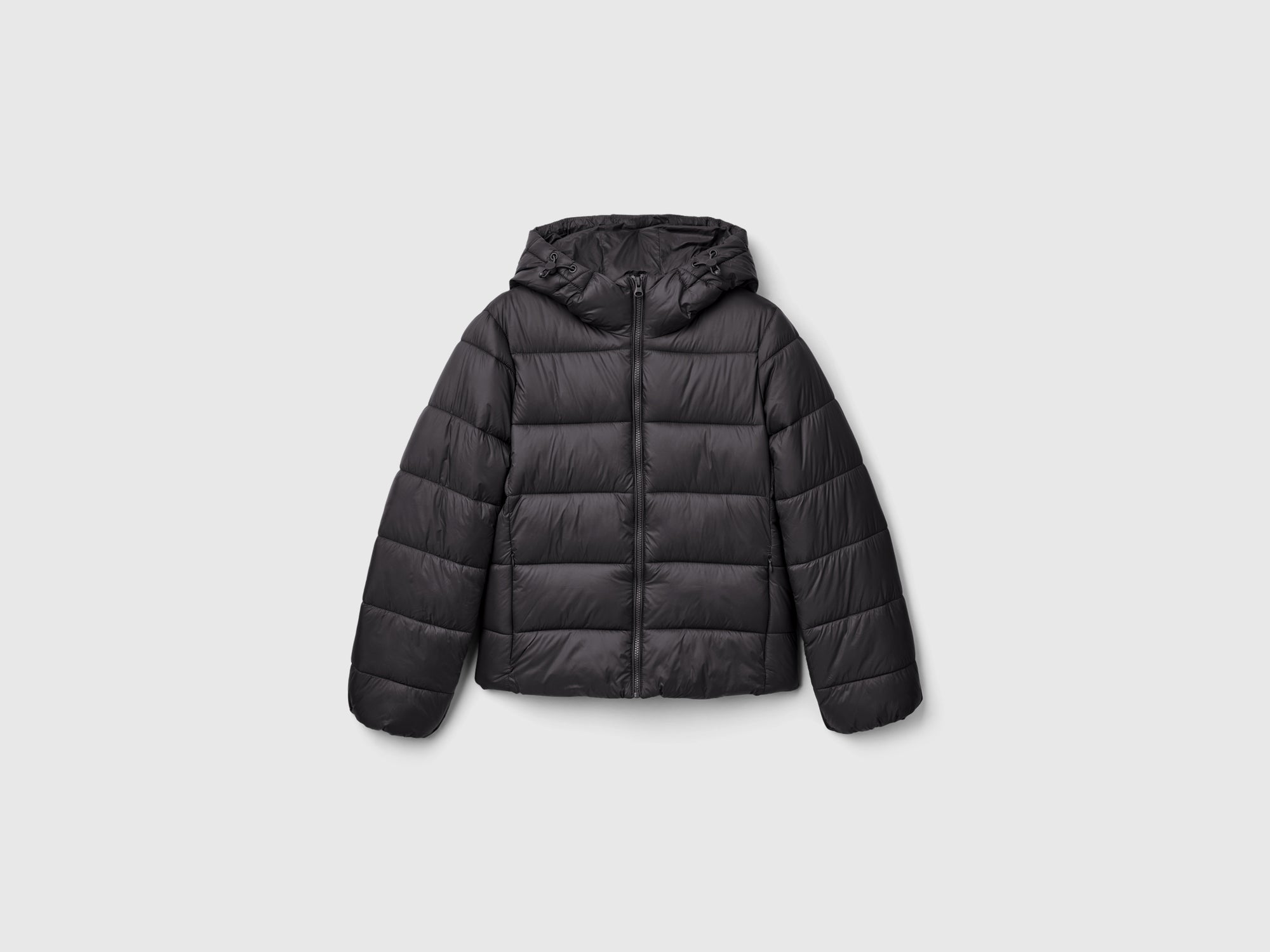 Giubbotto corto in nylon "Rain Defender" con trapuntatura orizzontale. Caldo ma ultra leggero, con imbottitura "Duck Free" in ovatta riciclata, prodotta a partire da bottiglie di plastica PET. Dotato di cappuccio con coulisse e ferma cordini, apertura a zip e tasche inserite nei fianchi. Un capo "Easy Care" che può essere lavato in lavatrice e asciugato in asciugatrice, seguendo le istruzioni riportate sull’etichetta. Articolo realizzato con materiale contenente almeno il 20% di nylon riciclato.