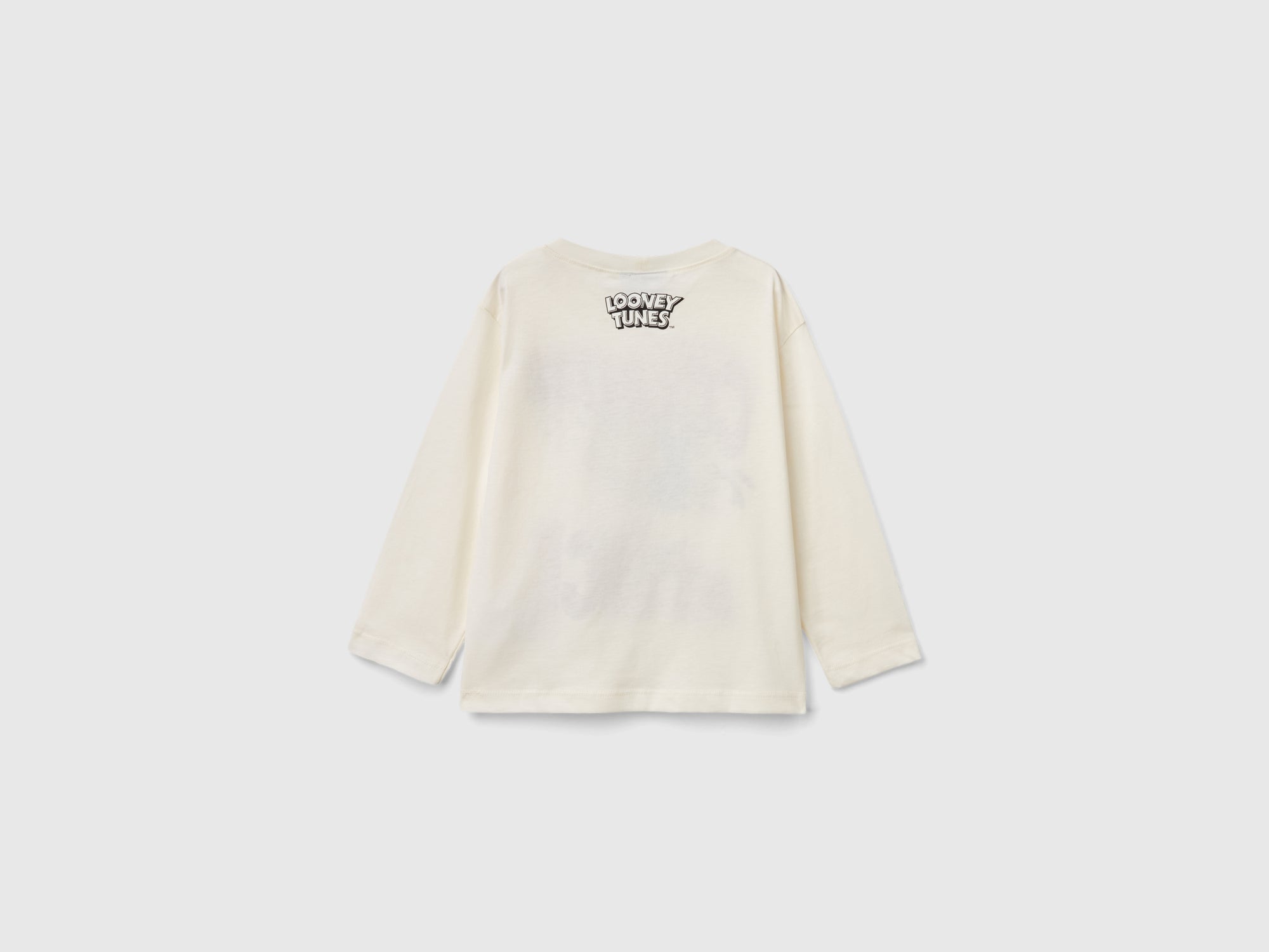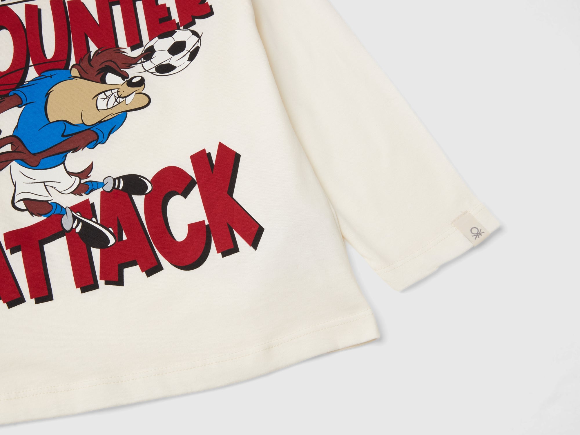 T-shirt a manica lunga in puro cotone biologico dalla mano calda. Vestibilità regolare, scollo rotondo e colorata stampa ©Looney Tunes con slogan sul davanti. Stile pop e divertente, per piccoli fan dei cartoon. Articolo realizzato con materiale contenente almeno il 95% di cotone biologico.