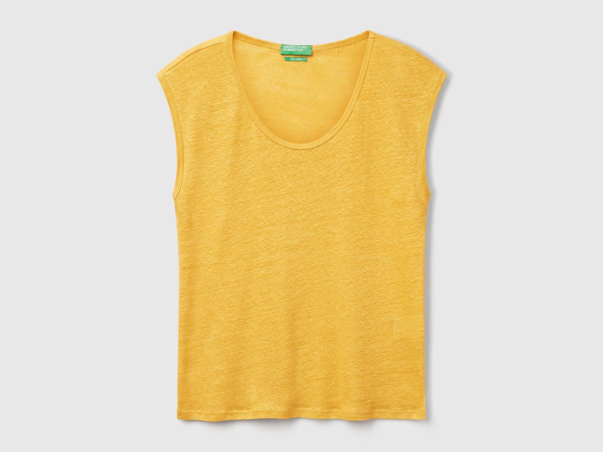 T-shirt a manica corta in tessuto morbido e leggero di puro lino. Vestibilità morbida con ampio scollo rotondo e spacchetti laterali. Un capo versatile, quotidiano e confortevole.