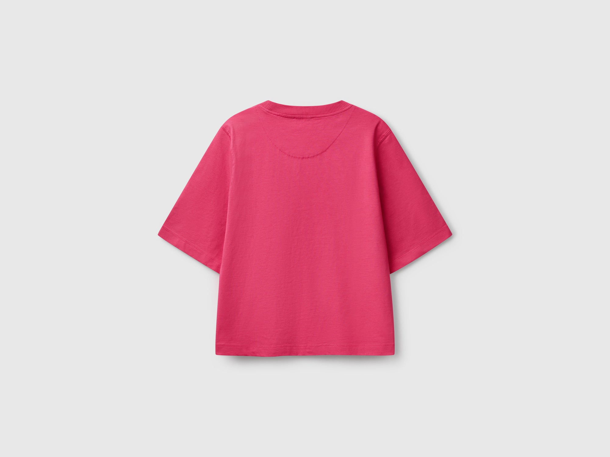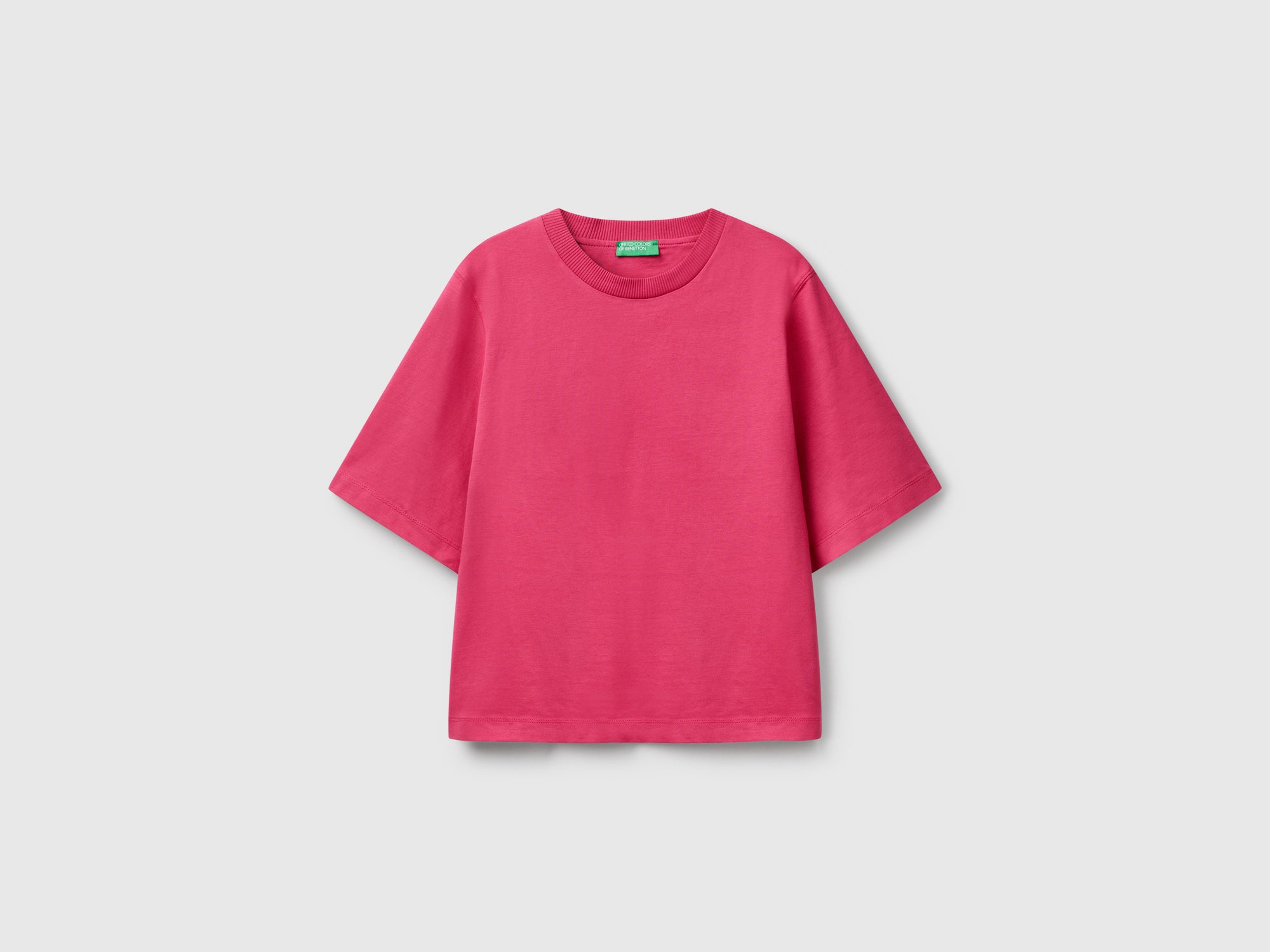 Maglietta girocollo in puro cotone con manica al gomito. Vestibilità boxy per un look casual ma aggiornato.