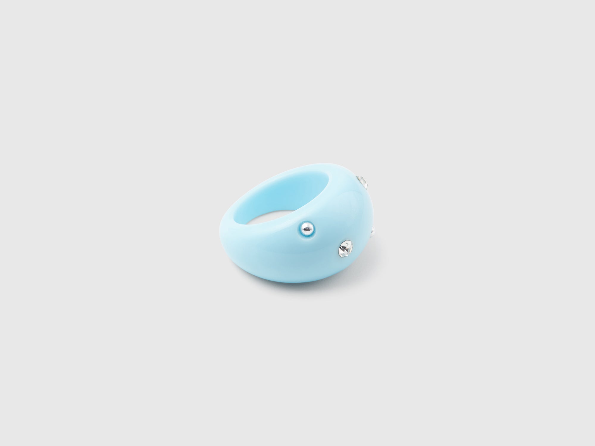 Anello con finitura lucida e design bombato. Piccoli strass e borchie incastonate. Quotidiano e colorato, per aggiungere un tocco personale ad ogni outfit. Taglia M: 17.5mm Taglia L: 18.5mm