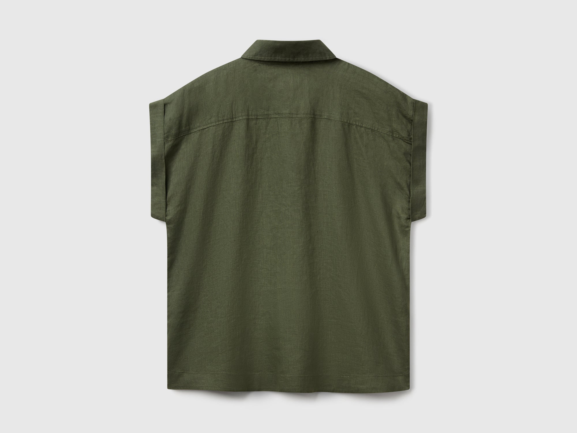 Camicia leggera regular fit con manica corta a kimono con risvolto, colletto classico e abbottonatura frontale. Articolo realizzato con materiale in 100% lino coltivato in Europa.