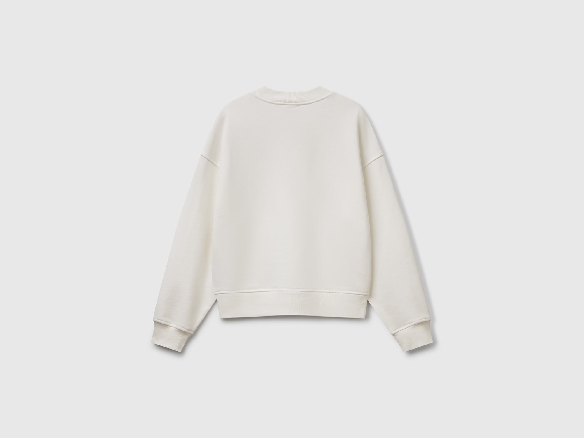 Felpa girocollo in misto cotone da donna bianco panna | Benetton Outlet Felpa girocollo in misto cotone da donna bianco panna 2 | Benetton Outlet