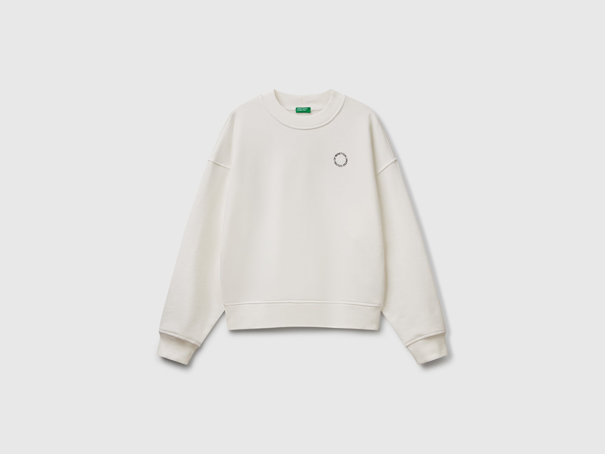 Felpa girocollo in misto cotone da donna bianco panna | Benetton Outlet