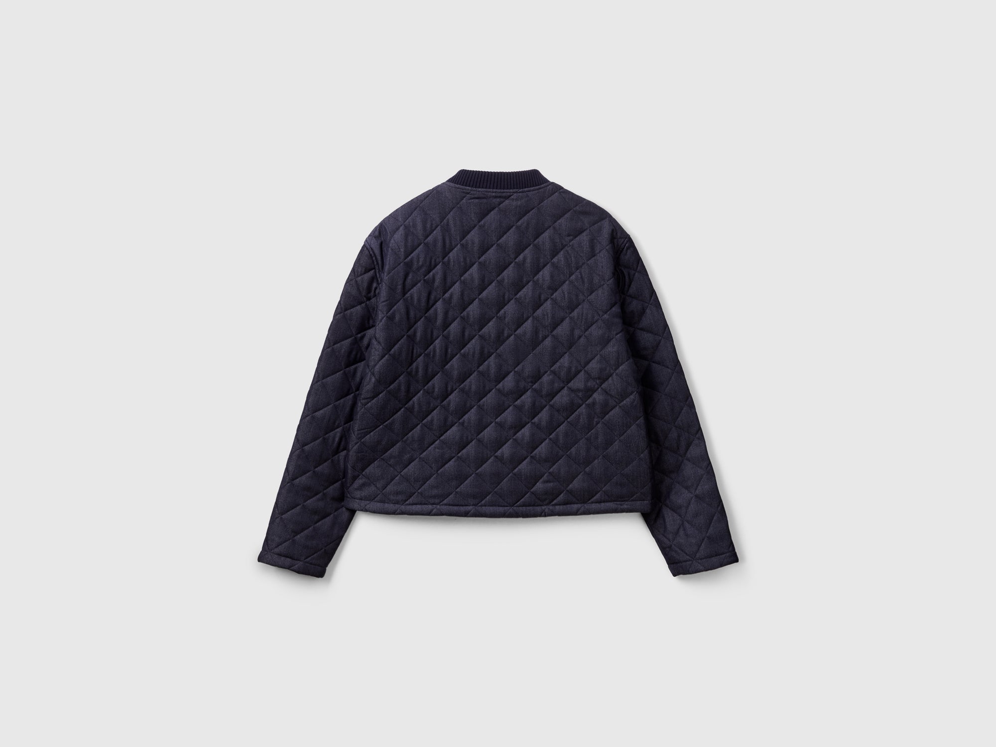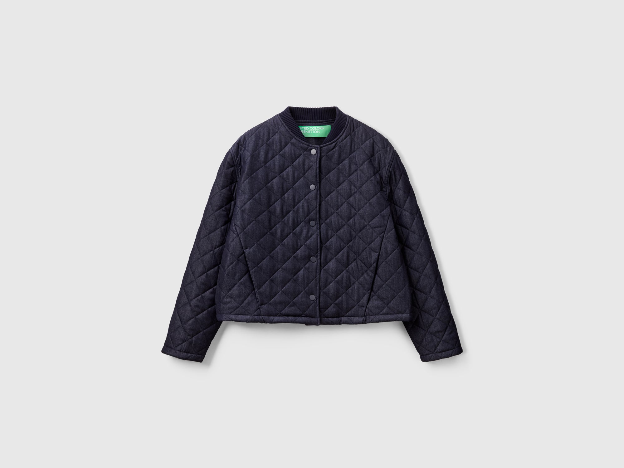 Giubbino in morbido tessuto trapuntato di misto viscosa effetto denim, con imbottitura interna. Colletto stile bomber, apertura frontale con bottoni a pressione e tasche inserite davanti.  Un classico senza tempo, ideale per esprimere la tua personalità con originalità.
