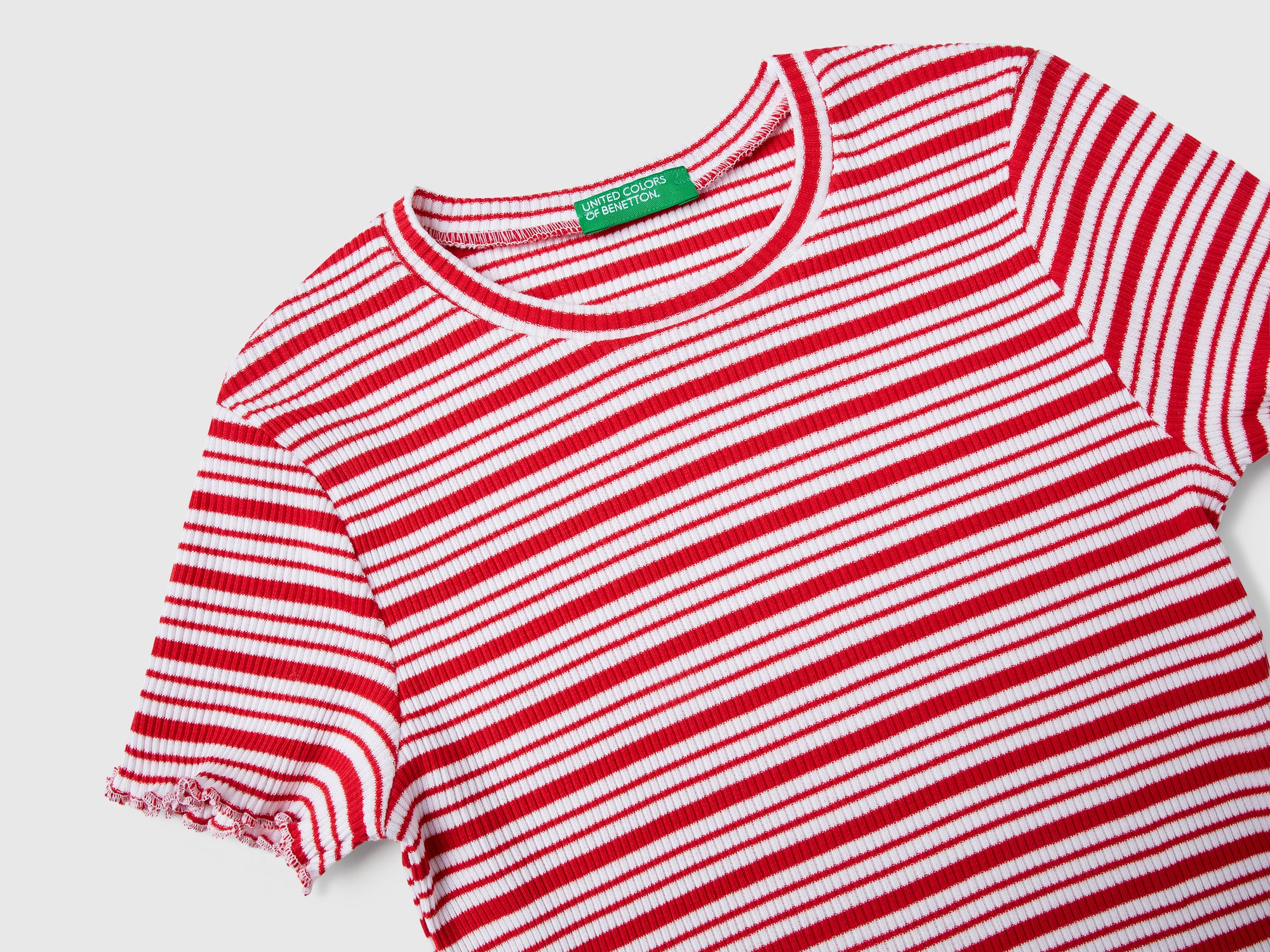 Maglietta a righe in cotone stretch da bambina rosso | Benetton Outlet Maglietta a righe in cotone stretch da bambina rosso 2 | Benetton Outlet Maglietta a righe in cotone stretch da bambina rosso 3 | Benetton Outlet