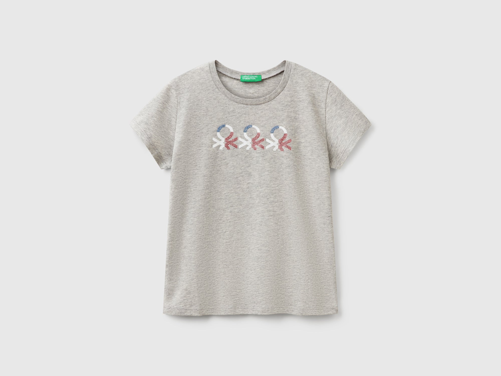 T-shirt con logo glitter in cotone da bambina grigio chiaro | Benetton Outlet T-shirt con logo glitter in cotone da bambina grigio chiaro 2 | Benetton Outlet T-shirt con logo glitter in cotone da bambina grigio chiaro 3 | Benetton Outlet