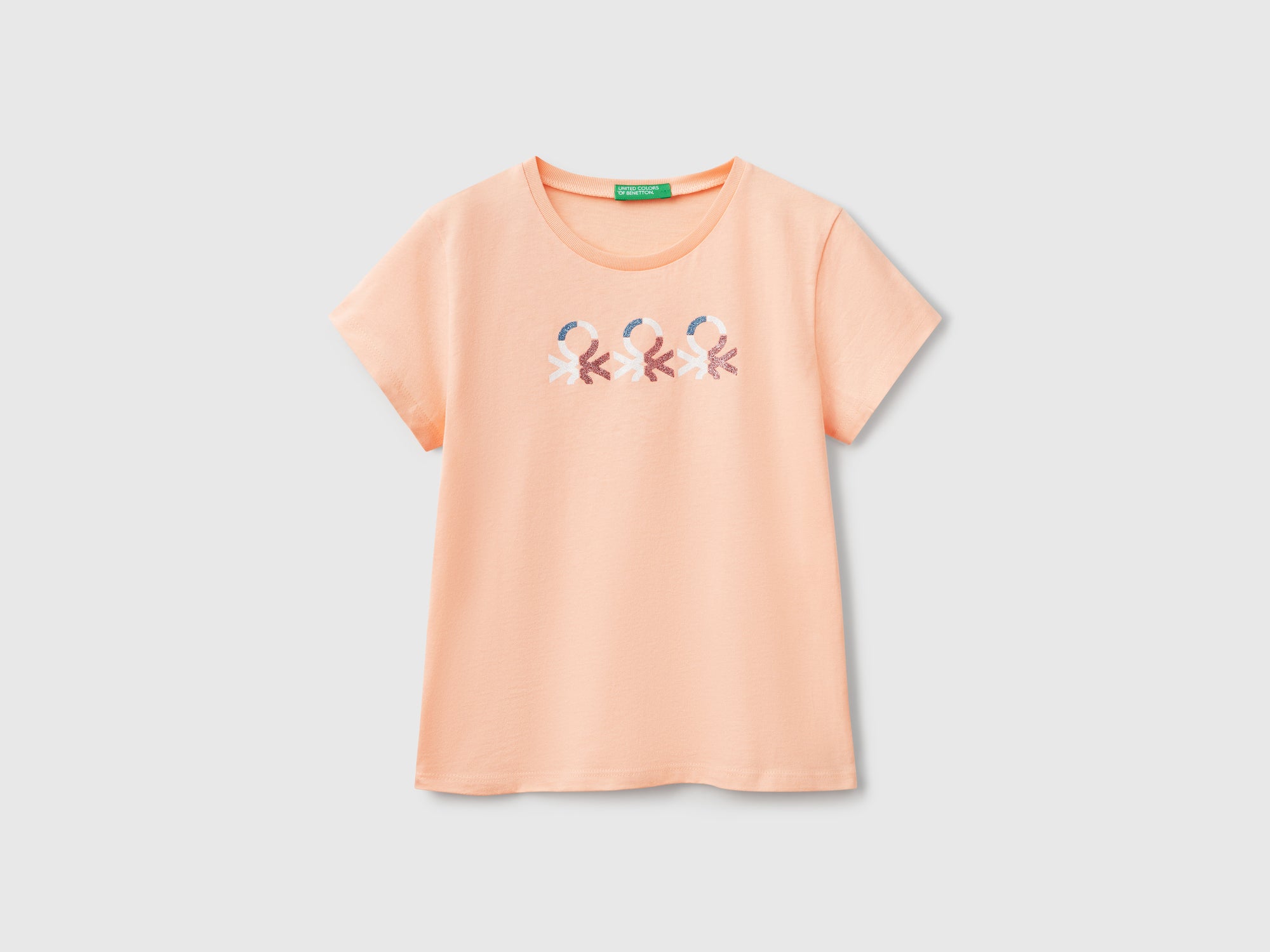 T-shirt con logo glitter in cotone da bambina pesca | Benetton Outlet T-shirt con logo glitter in cotone da bambina pesca 2 | Benetton Outlet T-shirt con logo glitter in cotone da bambina pesca 3 | Benetton Outlet