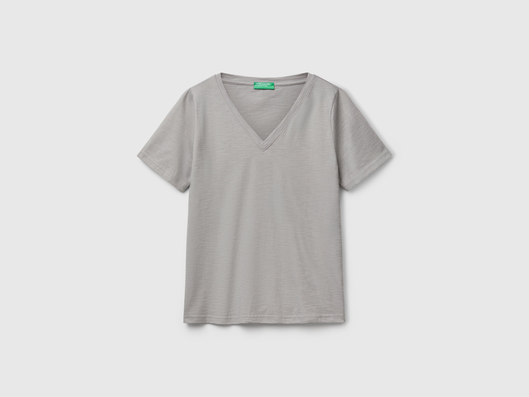 T-shirt scollo a V in cotone fiammato