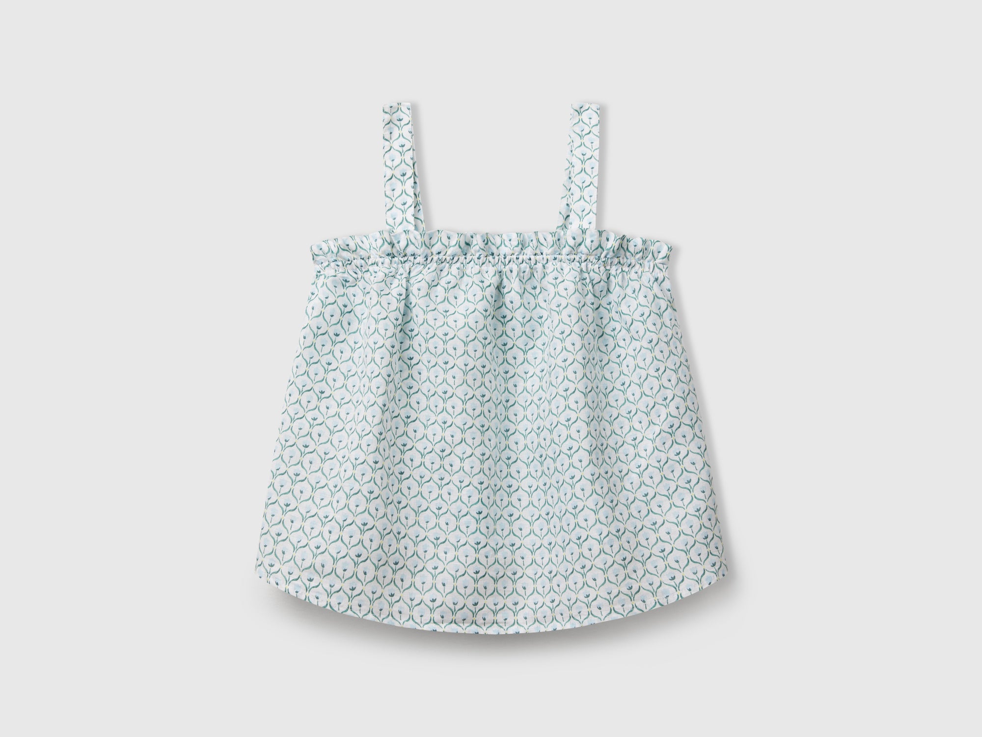 Top a canotta in morbido tessuto di misto lino e cotone. Scollo dritto con rouches e spalline sottili. Allegra stampa floreale su tutto il capo. Articolo realizzato con materiale contenente almeno il 50% di lino coltivato in Europa.